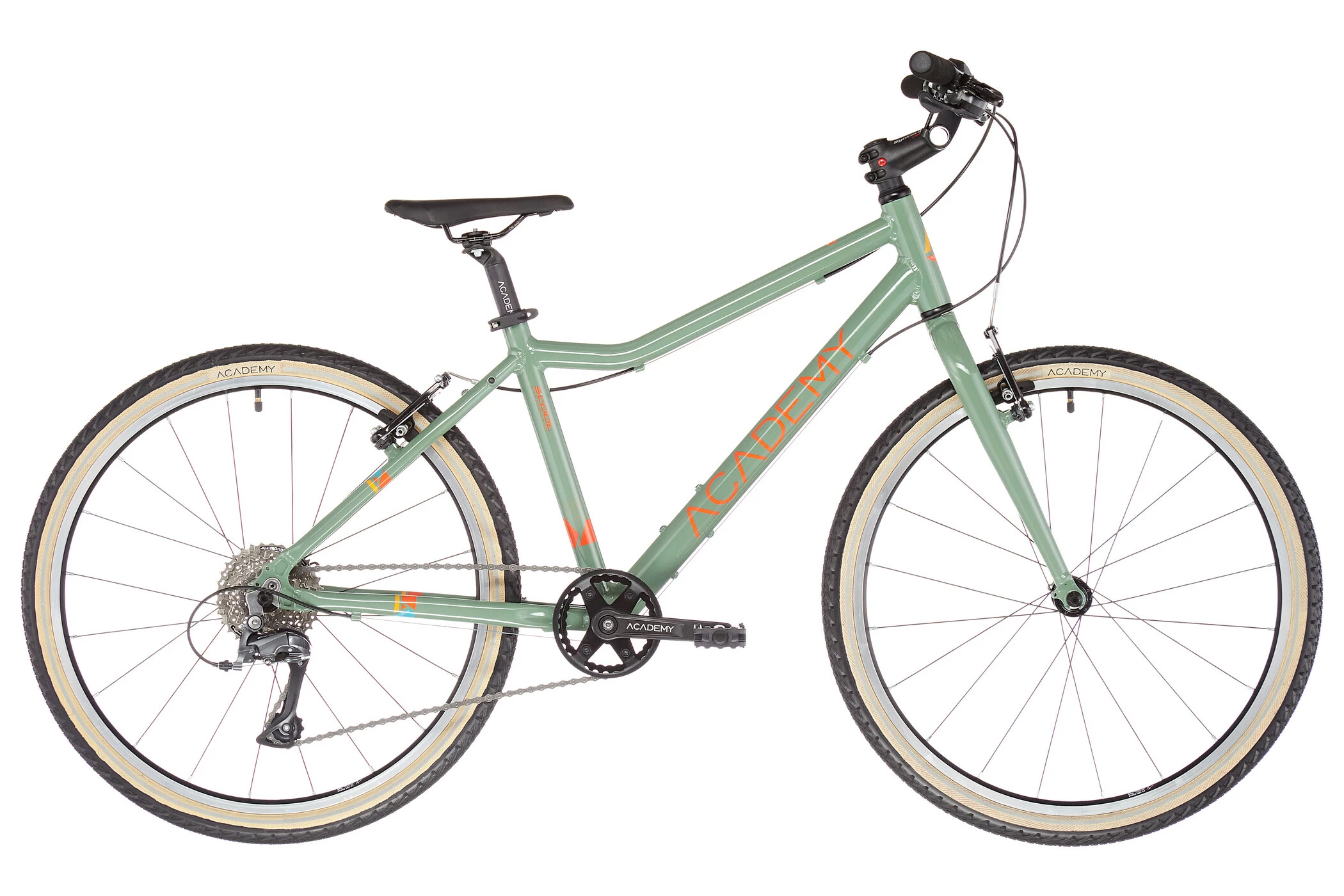 “Teknik udviklet af S’COOL”. Udviklerne af ACADEMY Bikes har i samarbejde med det tyske institut for ortopædi, osteopati og sportsmedicin (DIOOS) under ledelse af Dr. med. Andreas Elsner, er det lykkedes at udvikle ultralette juniorcykler, der opfylder de nyeste ergonomiske krav. Alle modeller er lettere end 40 % af et normalt barns vægt, og rammerne med dybe og smalle bundbeslag giver en stram, børnevenlig benstyring. Korte pedaler og den oprejste siddestilling gør det muligt at have fødderne på jorden hele tiden og sikrer stadig en ergonomisk knæposition under kørslen. ACADEMY-cykler er kompromisløst gennemtænkte med børnevenlige komponenter, der er designet til daglig brug i byen og alligevel har et moderne og cool design. Fra 20″ og opefter er alle modellerne udstyret med Shimano Claris-gear. Det holdbare, vedligeholdelsesvenlige 8-trins-drev giver optimal geargradation for børn. Det enkle og intuitive DUAL CONTROL-gearhåndtag sikrer et højt niveau af kørekomfort. Det nyudviklede Veetire Rail foldedæk med refleksring giver de bedste rulleegenskaber med perfekt vejgreb for høj trafiksikkerhed.