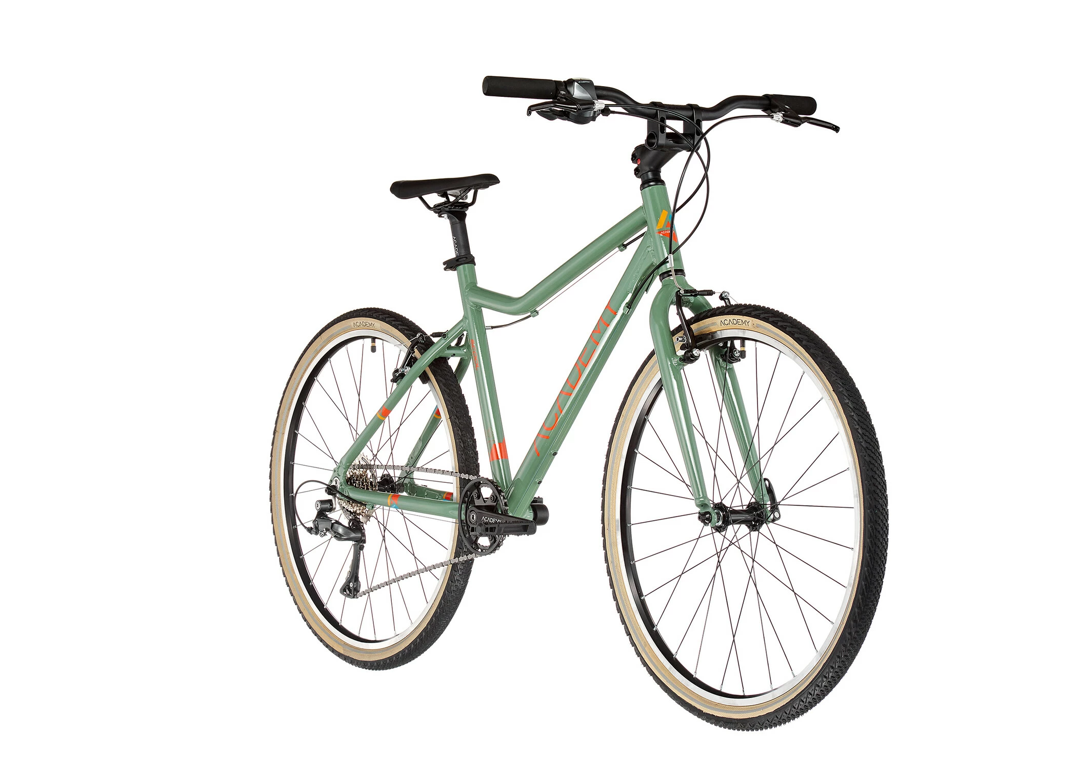 Udviklet af S’COOL. Udviklerne af ACADEMY Bikes har i samarbejde med det tyske institut for ortopædi, osteopati og sportsmedicin (DIOOS) under ledelse af Dr. med. Andreas Elsner, er det lykkedes at udvikle ultralette juniorcykler, der opfylder de nyeste ergonomiske krav. Alle modeller er lettere end 40 % af et normalt barns vægt, og rammerne med dybe og smalle bundbeslag giver en stram, børnevenlig benstyring. Korte pedaler og den oprejste siddestilling gør det muligt at have fødderne på jorden hele tiden og stadig sikre en ergonomisk knæposition under kørslen. ACADEMY-cykler er kompromisløst gennemtænkte med børnevenlige komponenter, der er designet til daglig brug i byen og alligevel har et moderne og cool design. Fra 20 og opefter er alle modellerne udstyret med Shimano Claris-gear. Det holdbare, vedligeholdelsesvenlige 8-trins-drev giver optimal geargradation for børn. Det enkle og intuitive DUAL CONTROL-gearhåndtag sikrer et højt niveau af kørekomfort. Det nyudviklede Veetire Rail foldedæk med refleksring giver de bedste rulleegenskaber med perfekt vejgreb for høj trafiksikkerhed.