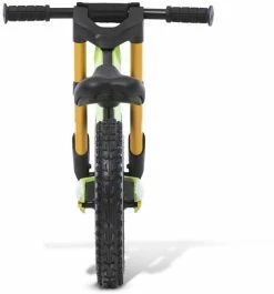 This model is constructed around a lightweight and robust magnesium frame. The saddle is comfortable and adjustable to adapt perfectly to the child’s growth. The double steel fork not only gives it a unique sporty look, but also guarantees great robustness. There is also protective foam on the handlebars, integrated non-slip footrests, secure handlebar rotation and 5-spoke aluminium rims with 12-inch cross tyres. It is the perfect companion for the first steps on the bike!