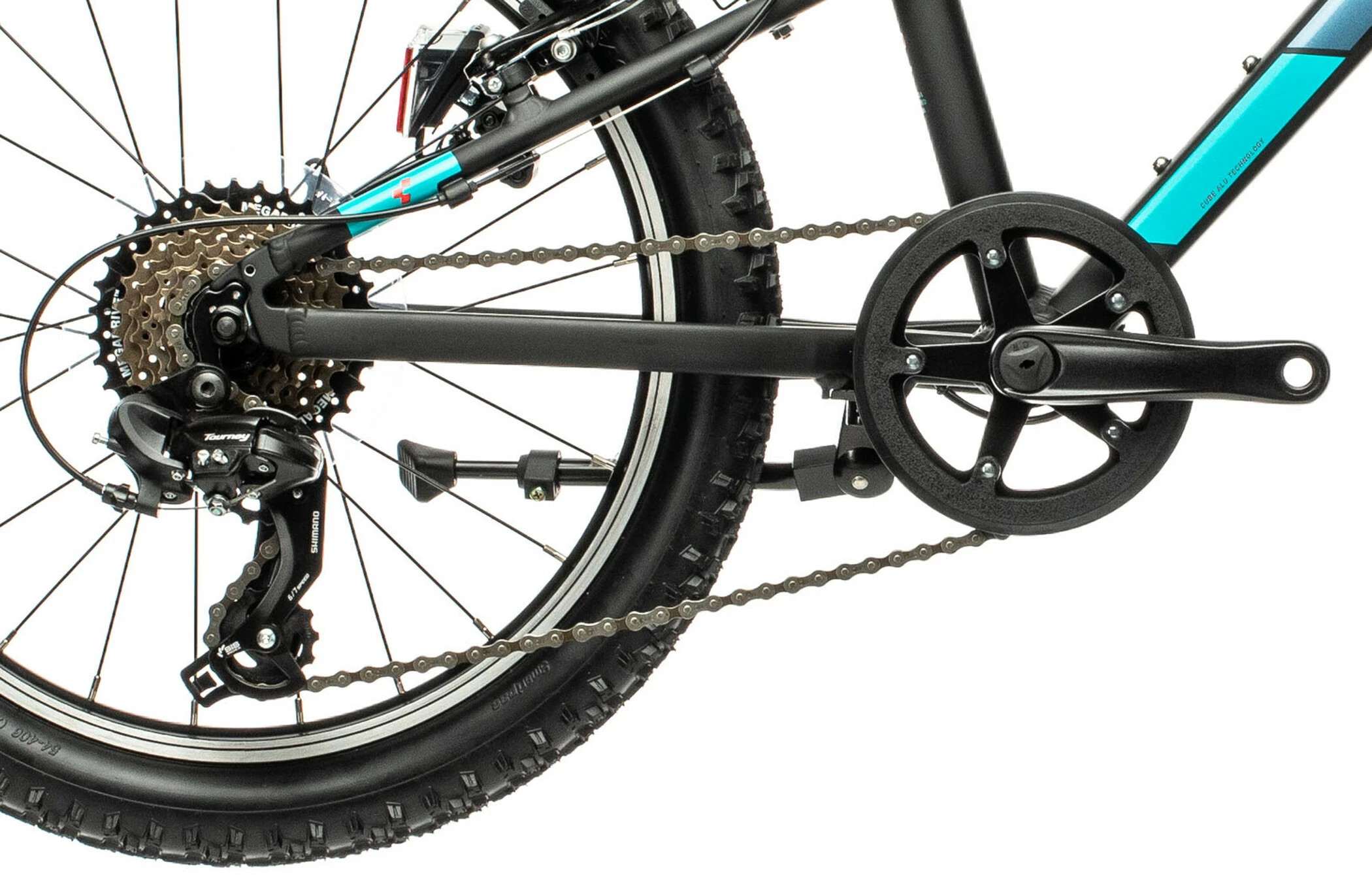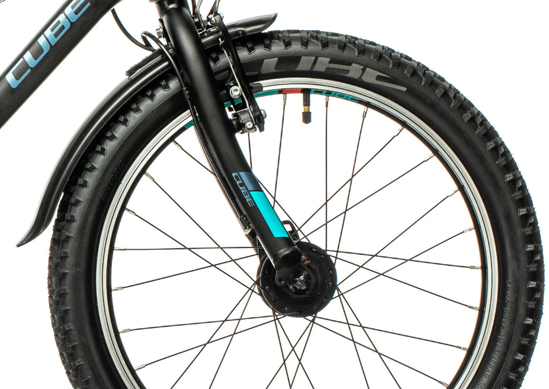 Acid 200’s varmebehandlede 6061 aluminiumsramme har samme kvalitet og holdbarhed som Cubes full-size mountainbikes. Den er let og stærk takket være et buet og formet underrør, der er skræddersyet specifikt til en ung rytters vægt. V-bremseudtag for og bag er de samme som på mors eller fars cykel. Og fordi vi ved, at ulykker kan ske, har vi monteret et udskifteligt derailleurophæng – så et uventet fald ikke ødelægger rammen.