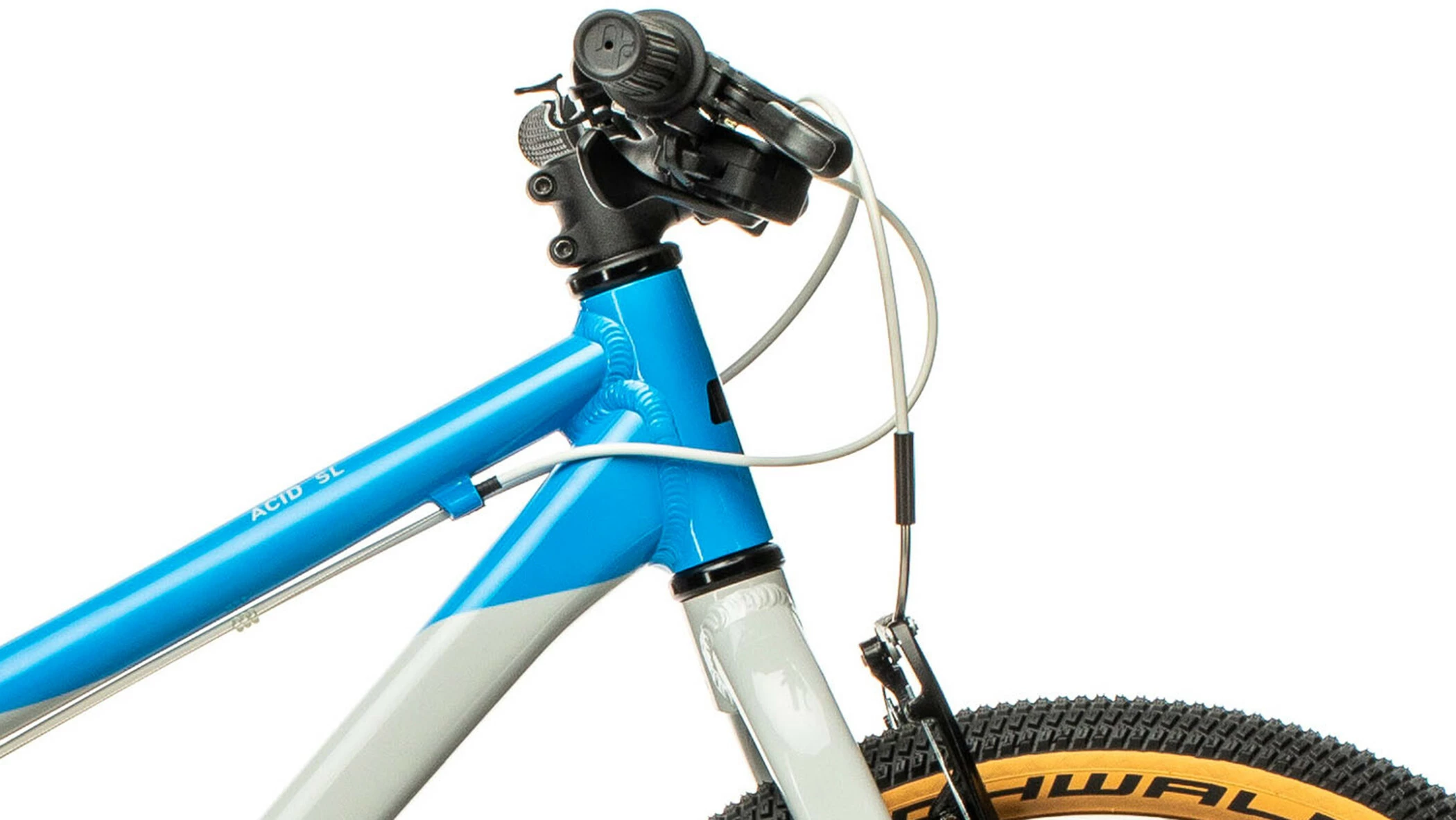 Less can be more. The Acid 200 SL takes the same succesful formula as the Acid 200, trims what little fat there was to make an even lighter and livelier bike, and adds to the spec too. CUBE chose a Microshift 9 speed 11-42T cassette for an extended gear range, so your junior mountain biker will have the confidence to tackle even more challenging climbs. A thinner handlebar and grips make it easier for small hands to hold on, steer and brake. And grippy tyres, powerful brakes and safe handling round out a package that your young rider will love.