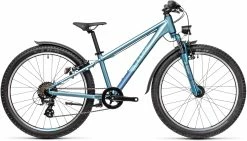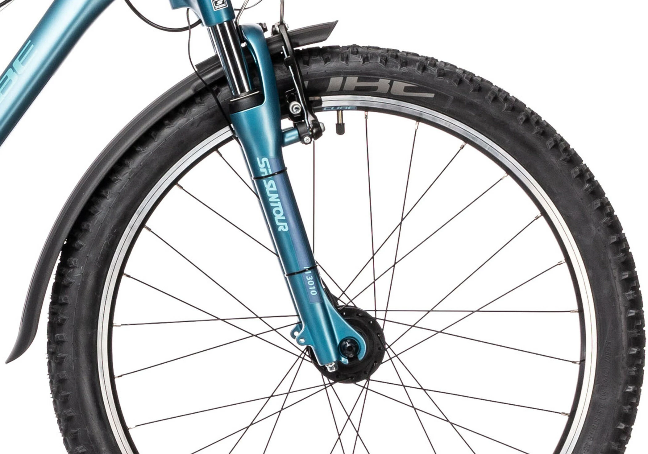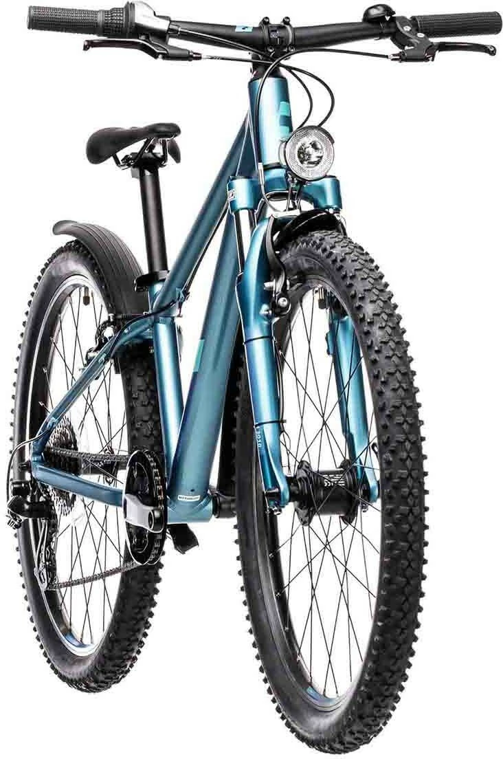 CUBE mener ikke, at du skal være nødt til at ændre en cykel, du lige har købt til dit barn, for at gøre den mere sikker på vejen. Derfor har de med Acid 240 Allroad inkluderet alt det tilbehør, du kan få brug for. Der er stænkskærme til vådt vejr, LED-lys, så dit barn kan se og blive set, og en bremsemodulator foran, der hjælper med at forhindre ulykker, der sker over styret. Den affjedrede forgaffel giver mere komfort og kontrol på ujævne overflader. En 7-trins gearkasse har nemme gearskift og et bredt gearområde. Og der er endda et fodstativ – du behøver hverken træ, parkbænk eller væg.