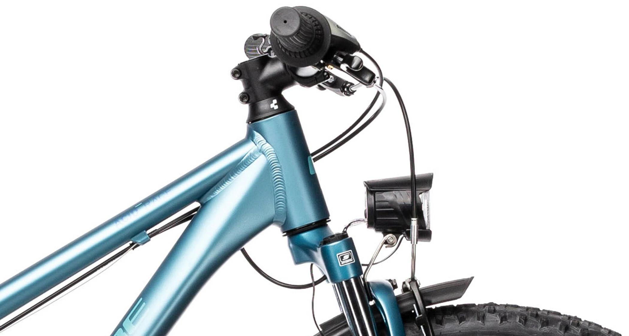 Acid Allroad er bygget af de samme varmebehandlede 6061 aluminiumsrør som voksencyklerne, og rammen på Acid 240 Allroad er lige så robust som en mountainbike i fuld størrelse, men med den rette vægt og de rette proportioner til et barn. Et komplet udvalg af tilbehør – herunder stænkskærme, belysningssystem og kickstativ – betyder, at den er fuldt udstyret til ethvert eventyr. Styringen er designet til at være både sjov og tillidsvækkende. Og fordi CUBE ved, at ulykker kan ske, har de gjort det nemt at udskifte gearophænget, så et slag eller et styrt ikke behøver at resultere i en dyr reparation.