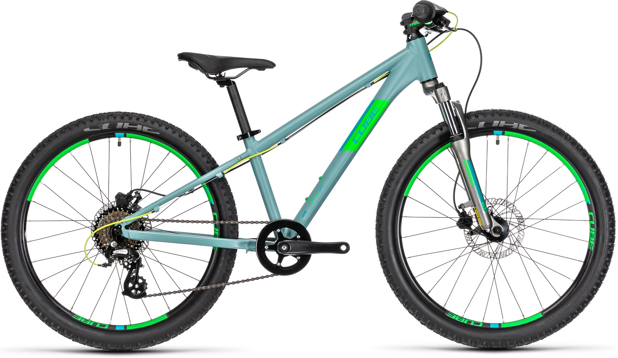 Acid 240 Discs stel er bygget af de samme varmebehandlede 6061 aluminiumsrør som voksencyklerne og er lige så robust som en mountainbike i fuld størrelse, men med den rette vægt og de rette proportioner til et barn. Skivebeslag gør det muligt at bruge disse kraftige, sikre og brugervenlige bremser. Der er en flaskeholder til forfriskning midt på turen og også monteringer til rack. Styringen er designet til at være både sjov og tillidsvækkende. Og fordi CUBE ved, at ulykker kan ske, har de gjort det nemt at udskifte gearophænget, så et slag eller et styrt ikke behøver at resultere i en dyr reparation.