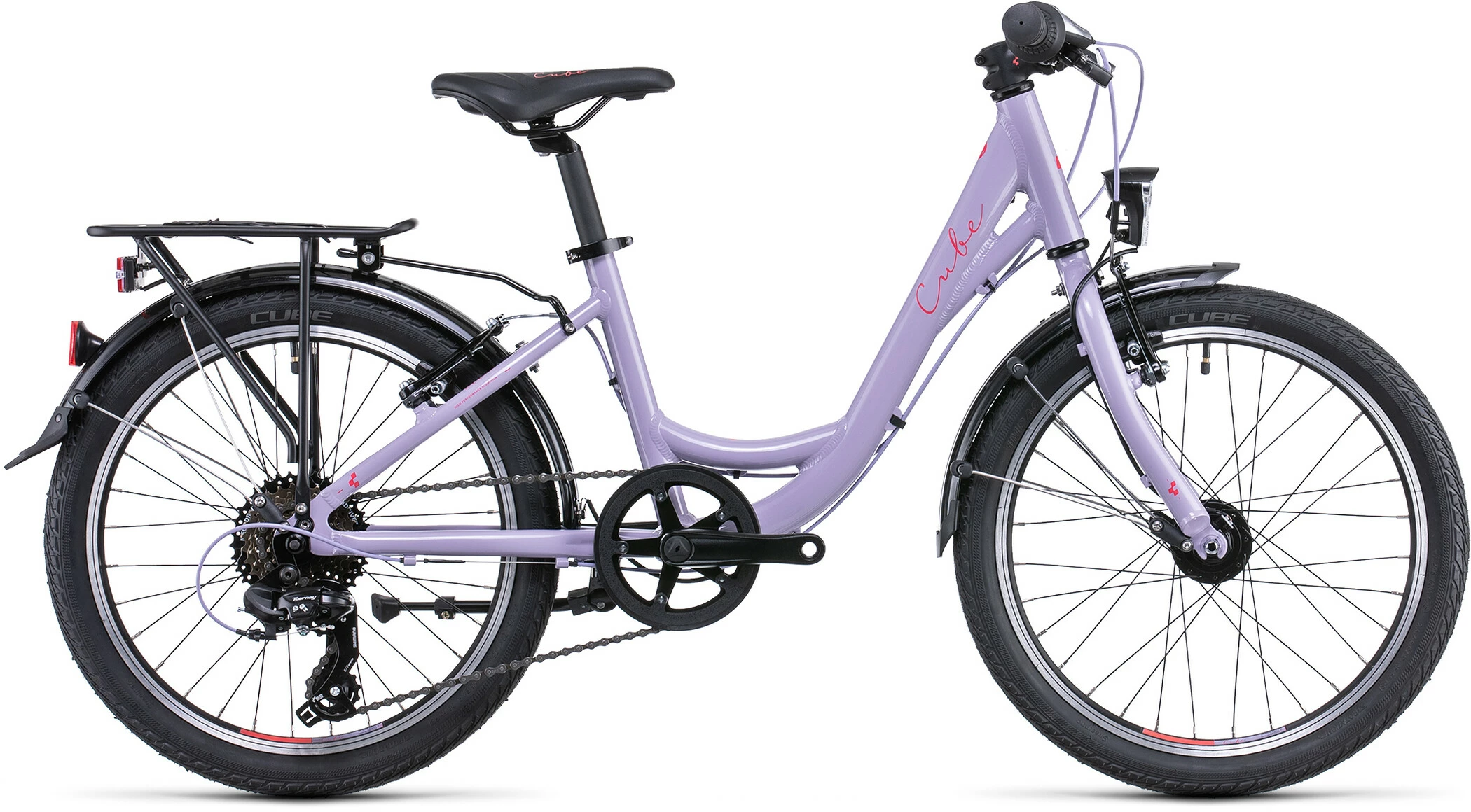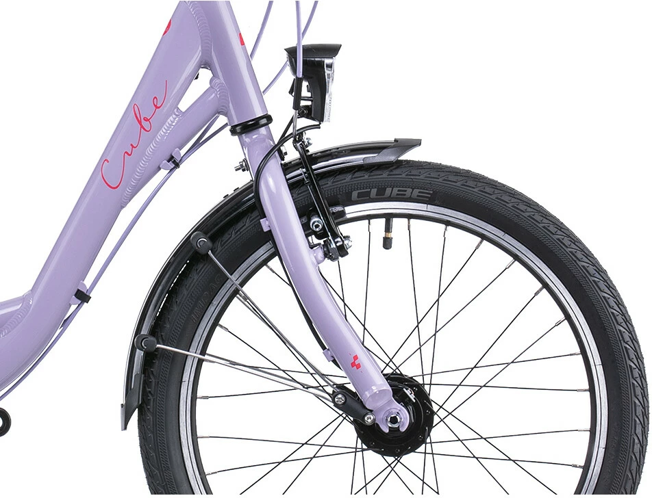 Fun, safe, versatile and stylish – that’s the Ella 200. With styling and design cues borrowed from its grown-up counterparts, Cube have added a full range of touring equipment to whet the appetite of your young explorer. From the full-length mudguards and sturdy luggage carrier to the kickstand and dynamo lights, there’s everything here the budding cyclist needs. Strong V-brakes with child-friendly levers and Shimano’s easy-shifting 7-speed transmission put her firmly in control. All that’s left is to decide the next destination…