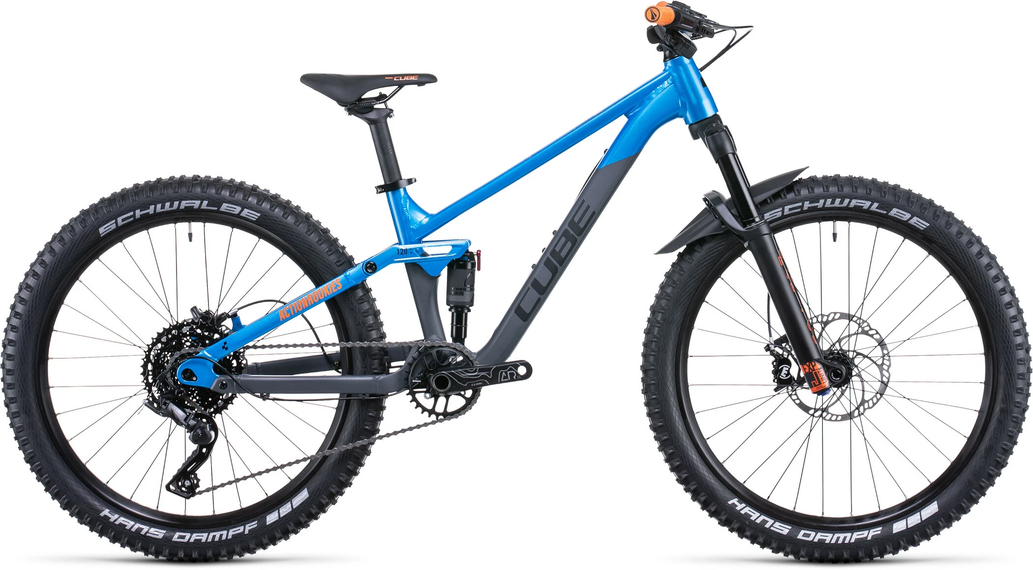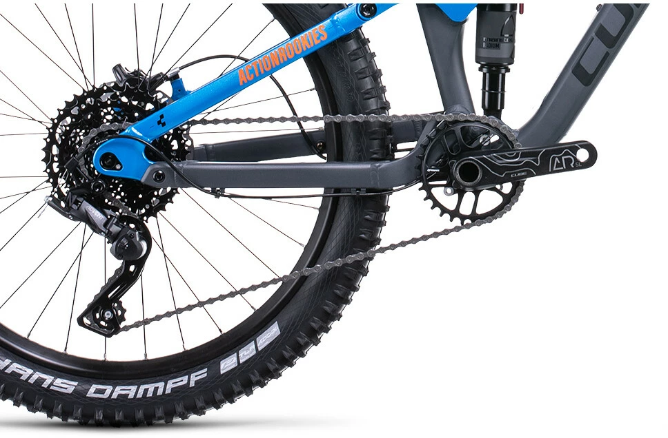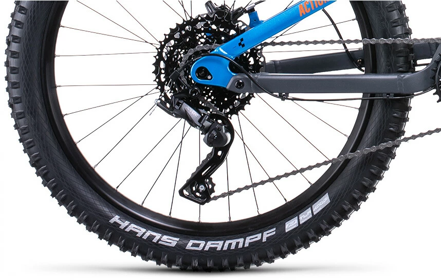 Loads of experience goes into every Cube frame – and the Stereo 240 is no exception. The wheels may be smaller than their other full-suspension bikes, but the attention to detail is just as thorough. Cube use the same kind of butted-aluminium tubes as their full-size bikes, and apply the same suspension kinematics. There’s a replaceable gear hanger so that the inevitable crashes don’t result in an expensive frame repair, and it’s all passed their strict in-house safety tests with flying colours – so you know it’s not just a fun ride, but a safe one too.