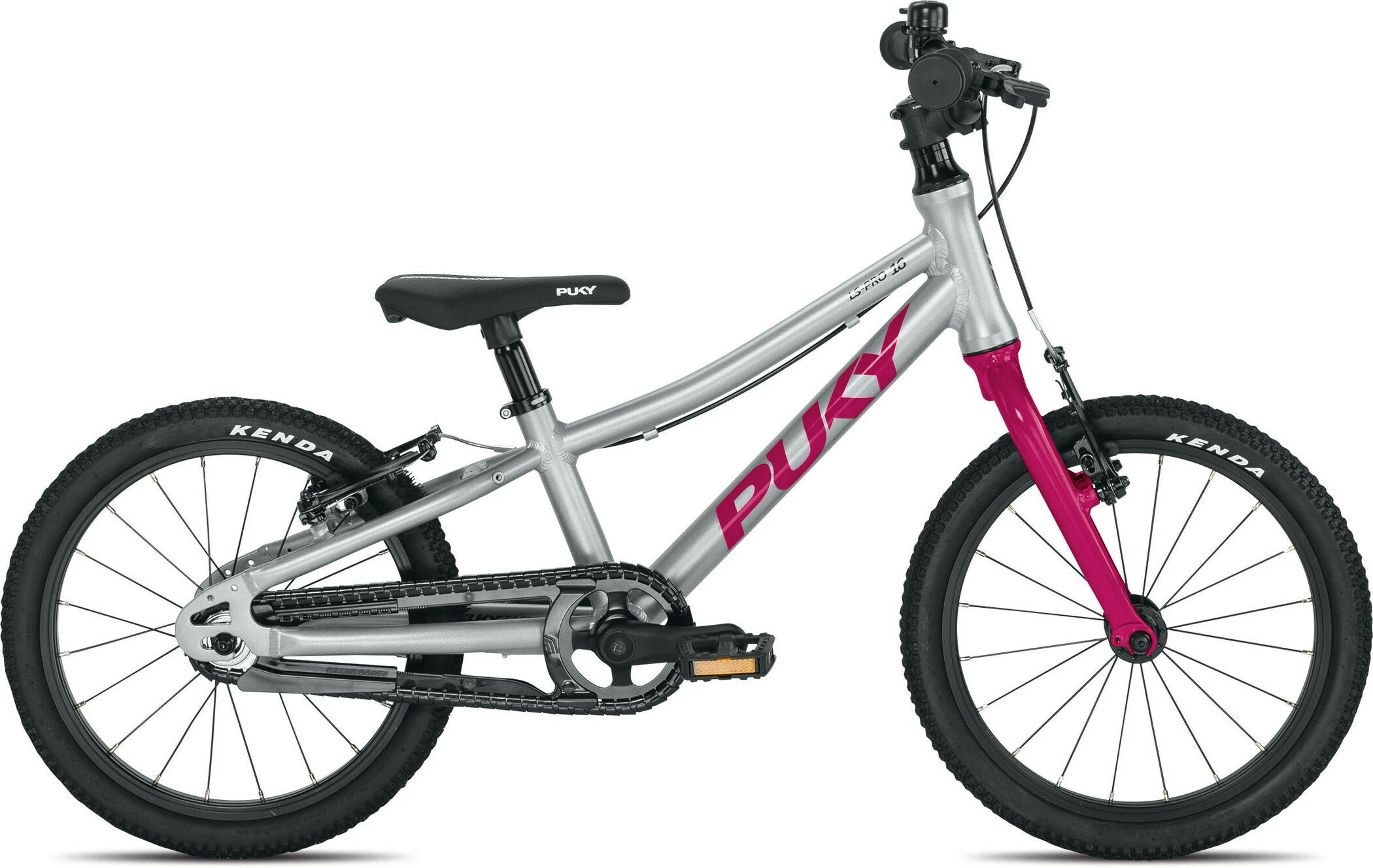 The extremely lightweight and ergonomic frame of the PUKY LS-PRO 16 is the heart of the smallest street racer in the series. The fork, crank and seat post are also made of aluminum, so that the entire bike weighs only 5.5 kg. Another special feature of our PUKY LS-PRO 16 are the world’s only standard-compliant V-brakes for children. Thereby, the braking process is decelerated in a child-friendly way to avoid falls due to abrupt stops. For perfect riding comfort, our designers have installed a specially developed saddle, as well as a height-adjustable Ahead stem, in order to be able to adjust an individual seating position of the riders. The PUKY LS-PRO 16 is suitable for children from 3 years and a height of 100 cm. In addition to the side stand and the bell, the scope of delivery of the LS-PRO 16 also includes the well-known PUKY safety handlebar grips and a reflector set. The cool HEBIE Chainlooper not only saves weight, but also protects as well against the grip in the drive and dirt. PUKY LS-PRO 16 thus stands for fun, sportiness and proven PUKY quality, which is tested by us beyond the legal standards.