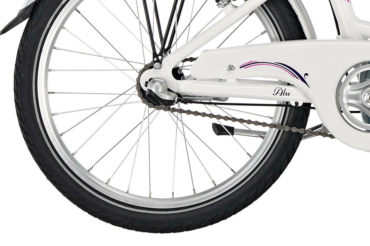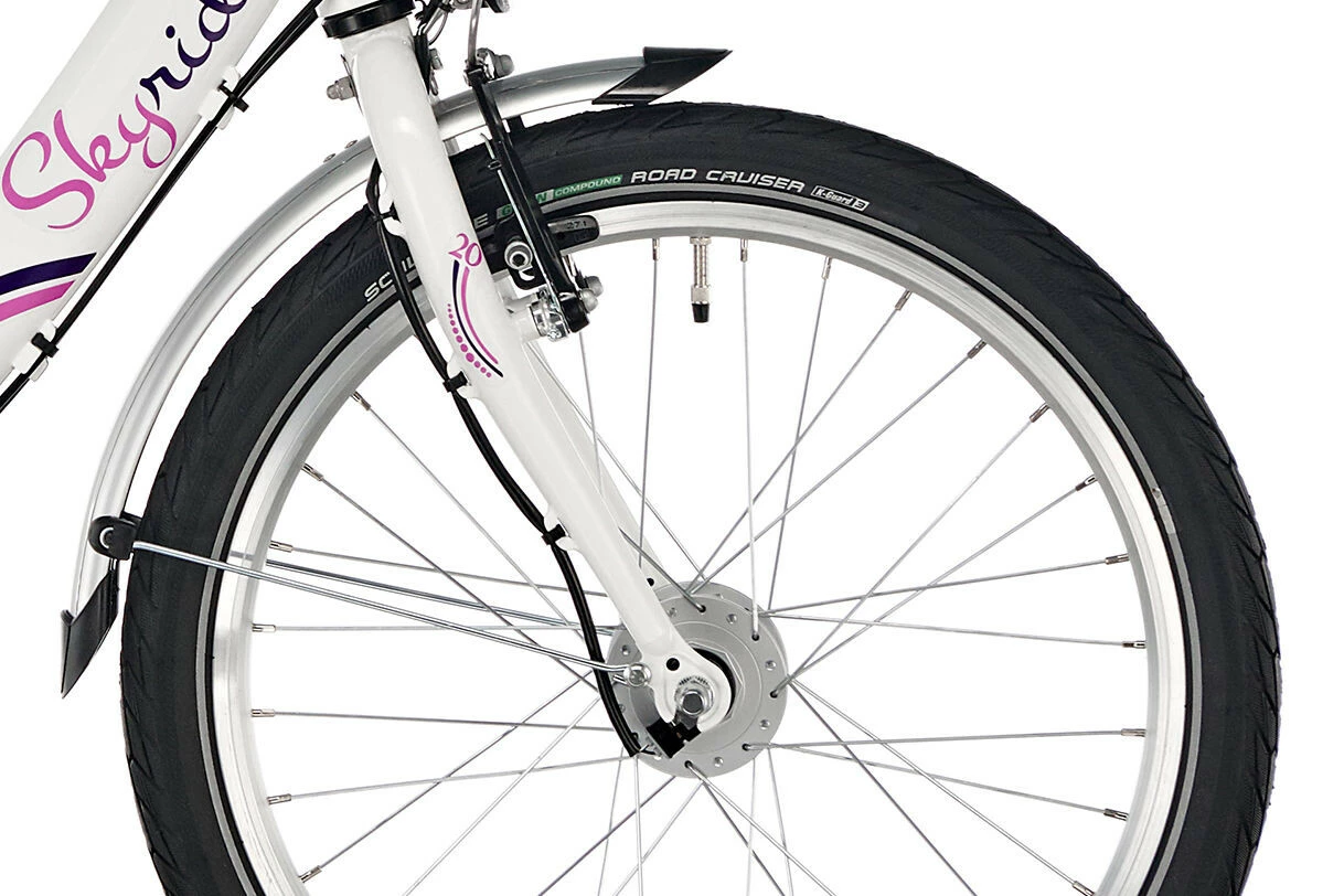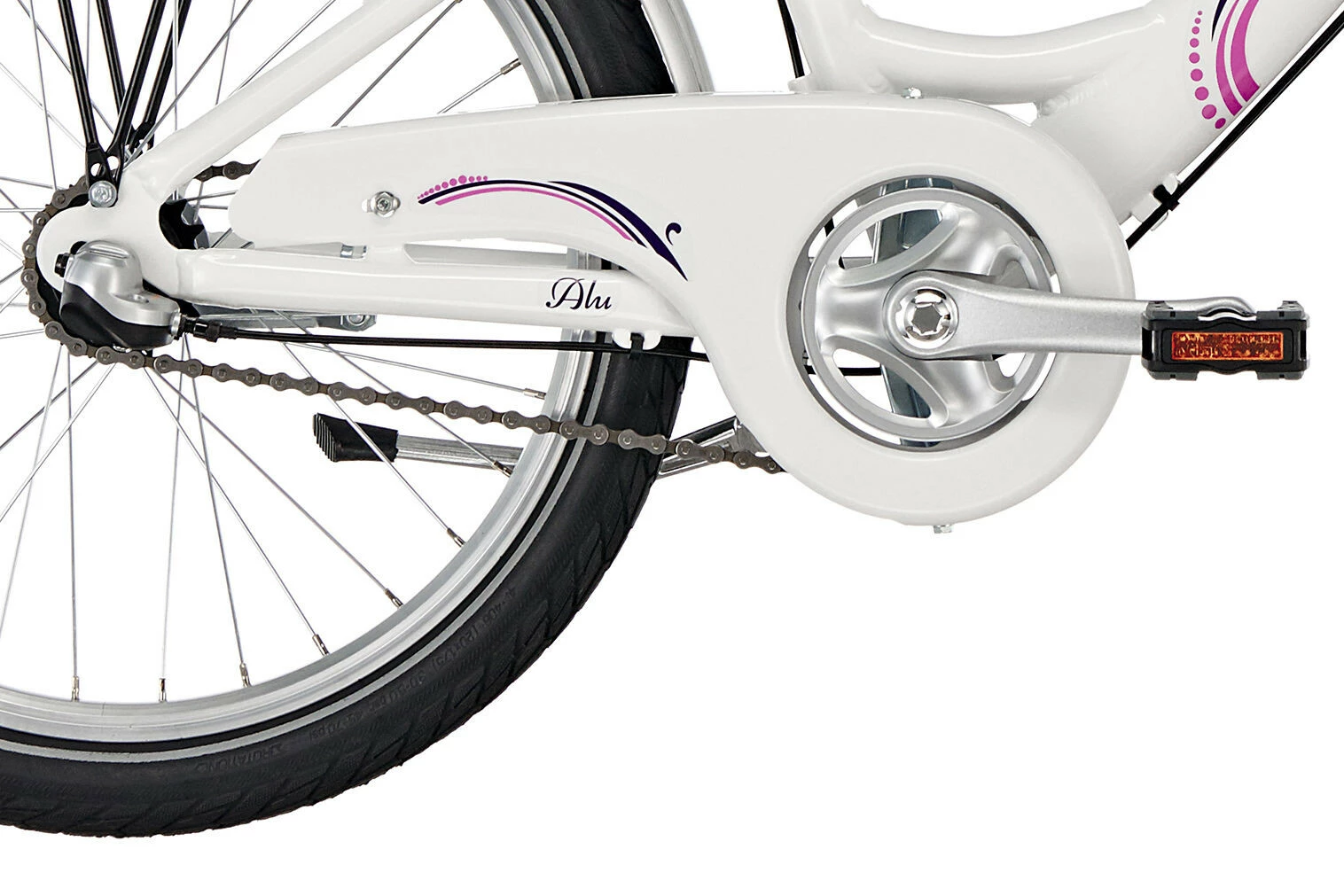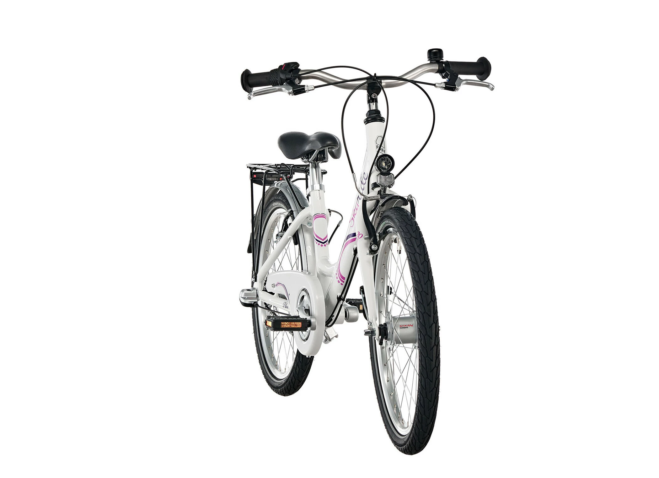 PUKY SKYRIDE 20-3 ALU er den første “voksne” cykel til piger. PUKY SKYRIDE 20-3 ALU er udstyret til alt, hvad enten du er på vej til skole, på søndagsudflugter eller leger med venner. Udstyret med en glidende Shimano Nexus 3-speed gearkasse, et LED-belysningssystem med parkeringslysfunktion og en pålidelig Shimano-navdynamo, efterlader denne ungdomscykel ikke noget ønskeligt med hensyn til funktion. Den lette og meget robuste aluminiumsramme i fashionabelt design er en rigtig eyecatcher. Typisk for PUKY er de mange særlige sikkerhedsfunktioner som kantbeskyttelsen på skærmene, sikkerhedshåndtagene og sikkerhedsklokken, som ikke kan åbnes og dermed ikke kan frigøre skarpe kanter.
