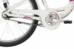 Shimano’s højkvalitets Nexus 7-speed navdrev gør denne cykel mere manøvrerbar, især i bakket terræn. Det bredere udvalg af transmissionsforhold og den finere graduering gør det meget lettere at mestre både op og ned ad bakke. PUKY SKYRIDE 24-7 ALU Light skinner i tre banebrydende farver hvid, berry og i Classic Line himmelblå / beige, hvilket gør alle piger varme om hjertet. Men ikke kun designet er overbevisende. De mange gennemtænkte tekniske detaljer, gør denne cykel til en ægte PUKY. Aluminiumbagagebæret med integreret Racktime-kobling, LED-forlygten med automatisk on / off, de anodiserede aluminium-aero-fælge eller Schwalbe Big Apple-dæk af høj kvalitet. Funktionenerne på denne cykel er på ingen måde begrænset af det flotte ydre.