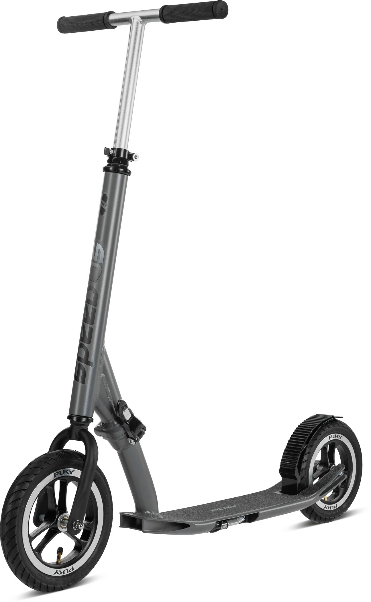 Scooters have been at the top of the children’s vehicle charts for years. The reasons for this are numerous. Many elementary schools rely exclusively on this type of vehicle, in addition to buses and trains, to cover the journey to and from school. Kids appreciate the speed with which they can get on and off and the excellent overview. Parents appreciate a long useful life from 4 years up to adulthood. The SpeedUs Two combines all these advantages with an extremely solid construction, a light and compact foldable aluminium frame, comfortable and traction-rich pneumatic tyres and last but not least with a young, sporty appearance.
