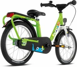 The PUKY STEEL 16 is the optimal beginner’s bike of the successful steel series, designed for the needs of slightly older children from 4 years of age. An ergonomic frame, the integrated PUKY safety set and a brake system suitable for children make the PUKY STEEL 16 a loyal companion. The PUKY safety set includes safety handlebar grips, a tested handlebar padding, a closed chain case as well as reflectors in front, back and on the pedals. Even the sounding body of the bell is designed in such a way that it cannot be opened and no sharp edges can come to light. The V-brake on the front wheel in addition to the back pedal brake is easy to operate and offers safe braking according to current standards. The stable luggage carrier of the PUKY STEEL 16 is also made of steel and is firmly connected to the frame. The shock-resistant powder coating ensures a long-lasting beautiful look of the children’s bike. Ball bearing wheels and handlebars guarantee smooth running and low maintenance.