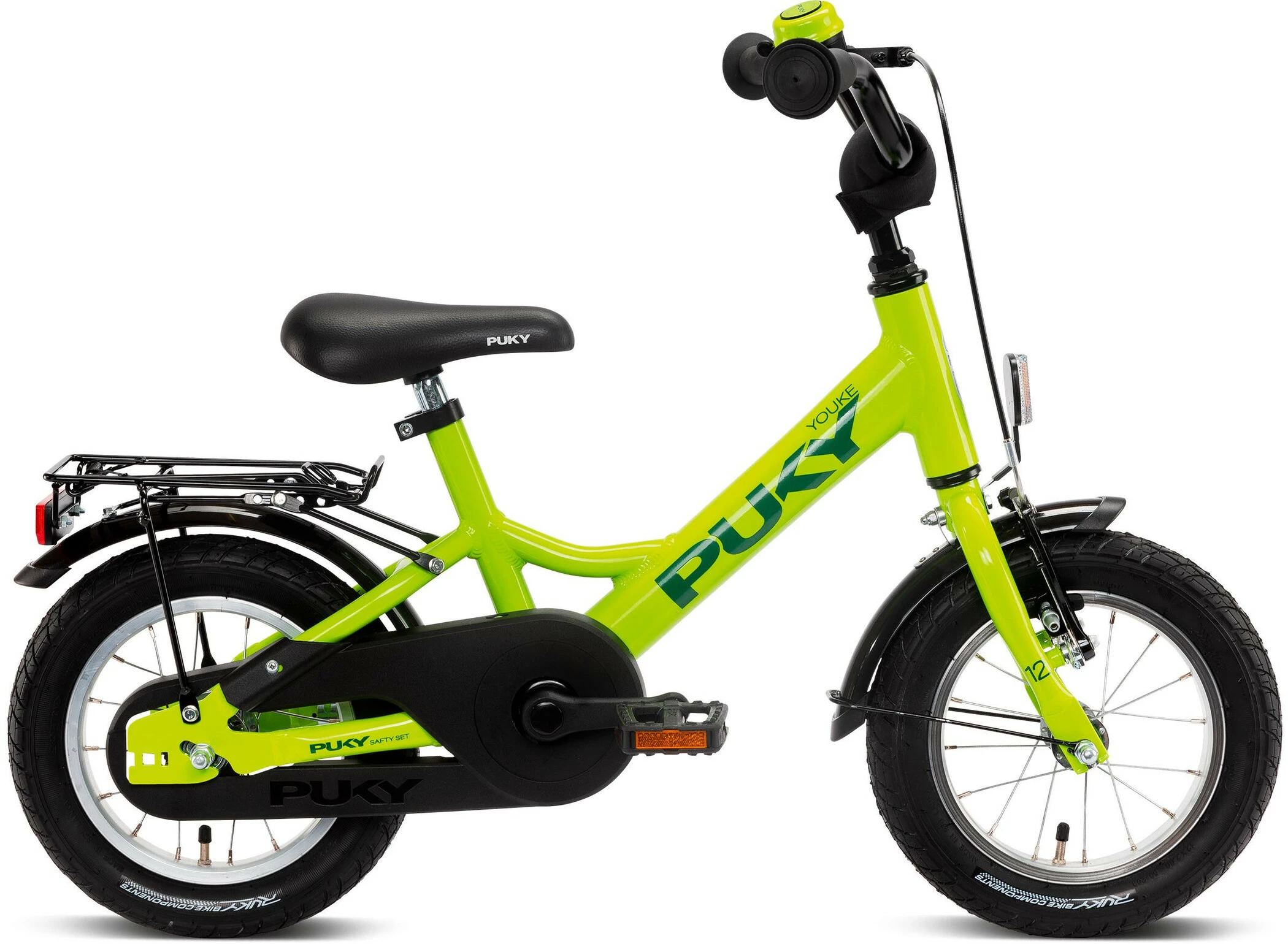 PUKY YOUKE 12 is the children’s bicycle for everyone, with which Puky guarantees learning to ride a bicycle. The latest generation of children’s bicycle with perfect geometry is the result of 70 years of experience. A deep frame entry and the low overhang height of the PUKY YOUKE 12 ensure optimal mounting and dismounting of the child. In addition, the handlebar widths as well as the transmission ratio on the YOUKE have been optimised and re-tuned. Lightweight aluminium components such as the frame, handlebars and cranks ensure a perfect weight ratio between the child and its PUKY YOUKE 12. Fully equipped with a standard luggage rack and a child-friendly V-brake brake system, the PUKY YOUKE 12 leaves nothing to be desired. Even without previous experience with a wheel, the future heroes of the road will be able to ride independently within 14 days.