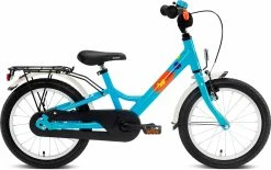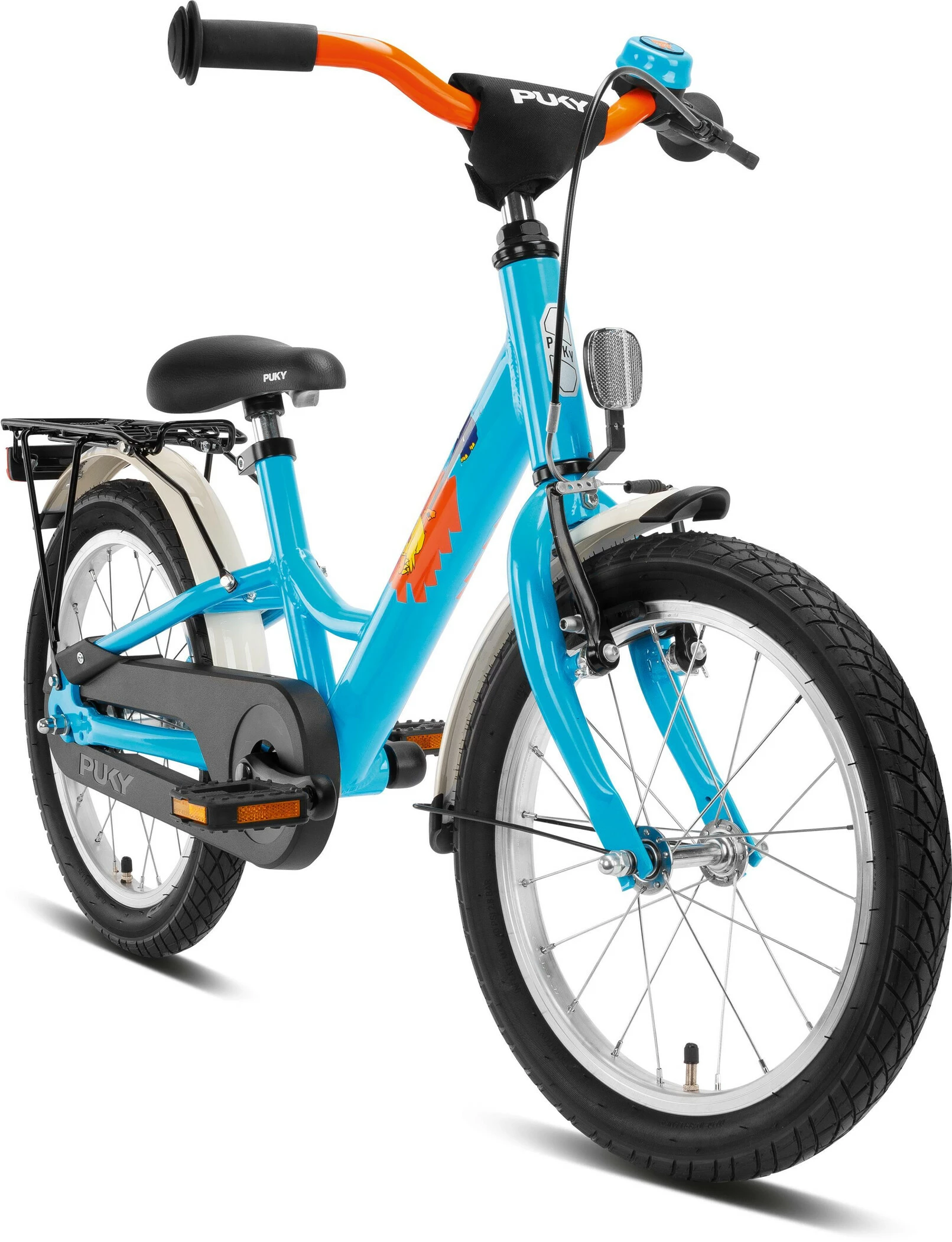 PUKY YOUKE 16 omdefinerer PUKY børnecyklen fra bunden. Den nyeste generation af børnecykler garanterer sjov og læringssucces for begyndere og avancerede piloter. En dyb rammeindgang og den lave overhøjde på PUKY YOUKE 16 sikrer optimal opstigning og nedstigning af barnet. Desuden er styrets bredde samt YOUKE’s gearforhold blevet optimeret og omjusteret. Letvægts komponenter i aluminium, såsom stel, styr og kranksæt, sikrer et perfekt vægtforhold (kun 8,2 kg) mellem barnet og dets PUKY YOUKE 16. PUKY YOUKE 16 er fuldt udstyret med en standardbagagebærer og et børnevenligt V-bremsesystem og lader intet tilbage at ønske. Børn opnår de bedste resultater med PUKY YOUKE 16, hvis de allerede har lært det grundlæggende med hjulet før. PUKY YOUKE 16 fås i farverne ultramarinblå, pink, frisk grøn og i temaverdenen Musen.