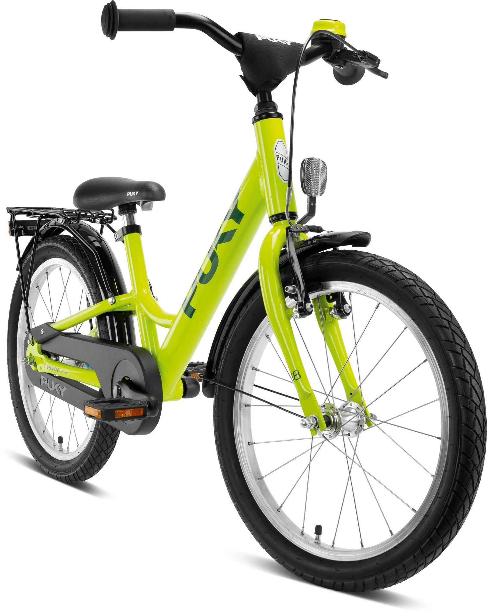 PUKY YOUKE 18 inspires beginners and advanced pilots alike. The PUKY YOUKE 18 is fully equipped with a standard luggage rack, a child friendly V-brake brake system and the PUKY SAFETY SET. A deep frame entry and the low overhang height of the PUKY YOUKE 18 ensure optimal ascent and descent of the child. In addition, the handlebar widths as well as the transmission ratio on the YOUKE have been optimised and re-tuned. Lightweight aluminium components such as the frame, handlebars and cranks ensure a perfect weight ratio (only 8.7 kg) between the child and its PUKY YOUKE 18. In seventy years of PUKY, millions of parents and children have learned to ride a PUKY bicycle. It is not for nothing that PUKY is synonymous with the children’s bicycle par excellence. With the new PUKY YOUKE PUKY sets new standards. The 100% learning guarantee! The PUKY YOUKE 18 is available in the colours ultramarine blue, pink and fresh green.