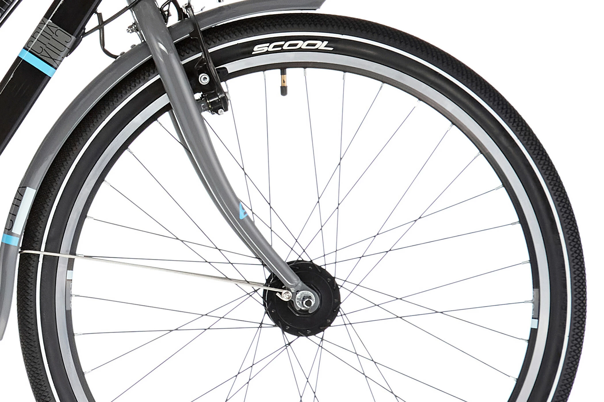 Med chiX twin’s cool og farverige design er du ikke kun stilfuld på vejen, men også godt forberedt på trafikken. For at sikre, at du ikke bliver overset i tusmørket og mørket, er der monteret en Shimano navdynamo, som får lyset til at fungere. Det er en leg for børn at betjene gearene i ordets egentlige forstand med et drejegreb. Der anvendes kraftige fælgbremser til sikker opbremsning. Sikkerhedsreflekser foran og bagpå fuldender beskyttelsen.