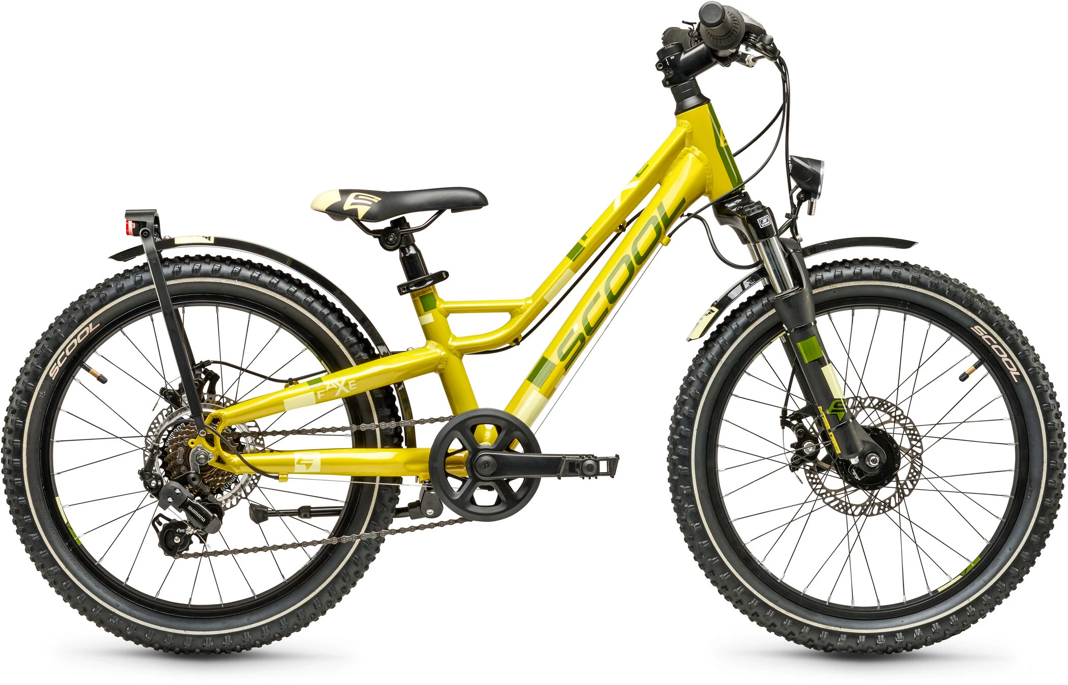 FaXe is not only part of Wickie’s strong men. At S’COOL faXe is also a complete series of strong bikes. The aluminum frame, the suspension fork as well as the roadworthy equipment are fun on any trail and also offer legally secured enough traction on the road.