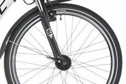 Med denne stilfulde troX EVO kan du nemt klare vejen til skolen, uanset hvordan vejret er. Den StVZO-godkendte 26-tommer cykel er udstyret med en affjedret forgaffel, så du kommer komfortabelt frem til din destination, selv på mindre gode cykelstier. Hvis det stadig er mørkt på vej til skole om morgenen, kan du stole på dine navdynamodrevne for- og baglygter.