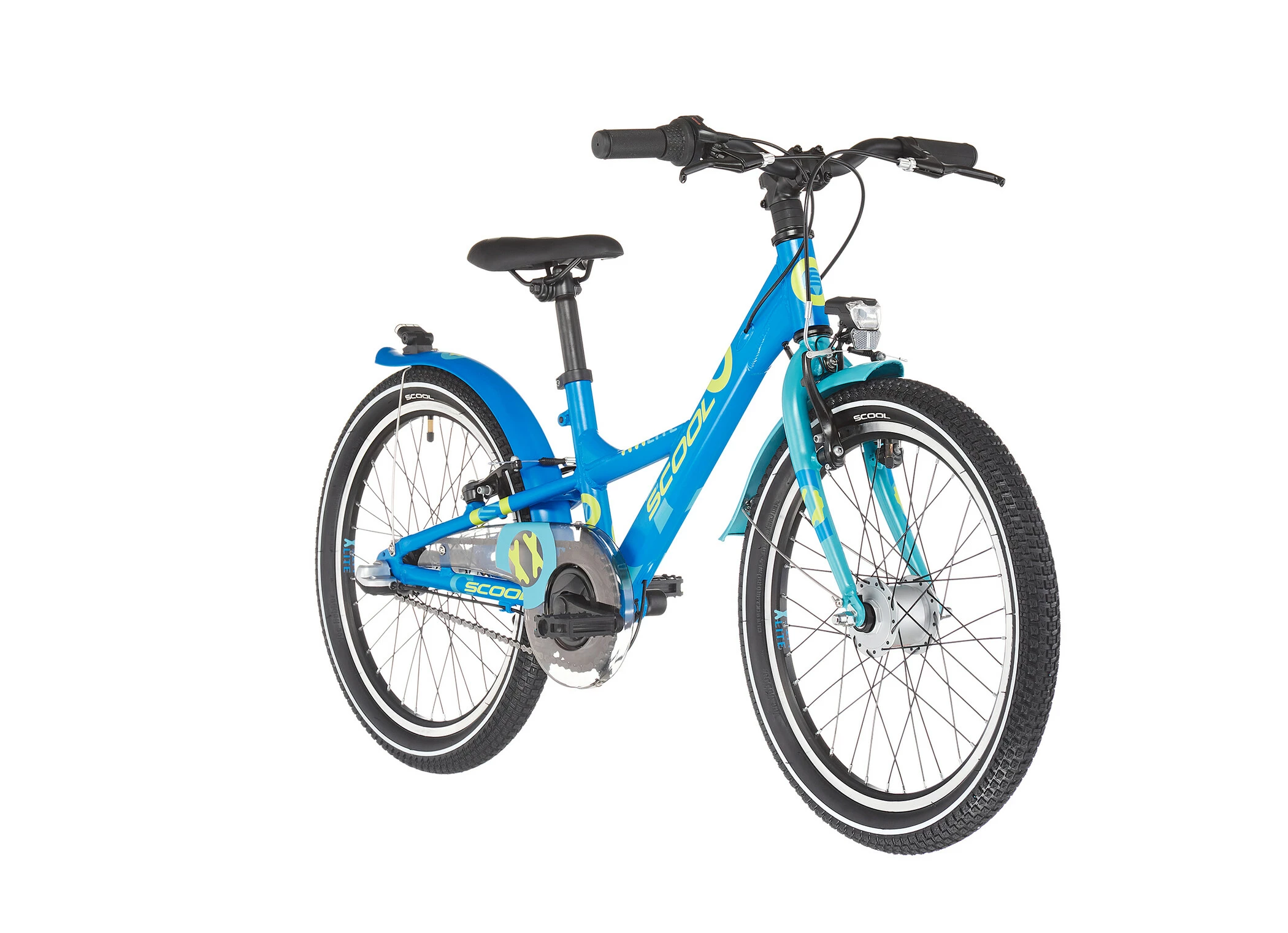 Med XXlite 20 3-S fra s’cool kan sportslige børn på over 120 cm sikkert køre på og uden for vejene under forskellige lys- og vejrforhold. “20” i navnet står for rammestørrelsen og “3” for antallet af gear i navet. En robust aluminiumsramme sikrer langvarig køreglæde. Grippy fælgbremser på for- og baghjulet fungerer pålideligt, når det er nødvendigt. De let profilerede 20-tommers dæk giver tilstrækkelig trækkraft på forskellige overflader. Modellen leveres også med køreklart tilbehør, herunder for- og baglygter, alle nødvendige reflekser, stænkskærme og klokke.