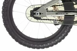MTB’en har greb, profilerede dæk, rizer-bar-styr, stilfulde motocross-mudderbeskyttere og hurtigudløser på sadelpinden – ligesom de store. Den er afhængig af en letløbende V-bremse på forhjulet og det gennemprøvede backpedal på baghjulet for at holde de unge hidsige sporer i skak. Indgangsdrev med stor kædeskærm er alt, hvad du har brug for på denne cykel. Så de små cykelhelte bevarer kontrollen, og buksebenene forbliver rene.