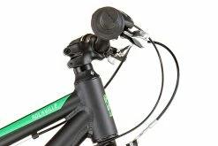The sporty Rockville is a children’s mountain bike in a class of its own. The light aluminium frame has not only a robust equipment, but also a very child-friendly geometry due to the strongly sloping top tube which allows a safe handling of the Rockville. The Shimano Tourney 7-speed derailleur offers sufficient gearing for the first longer rides and the Shimano twist shifter makes shifting clean and fast.