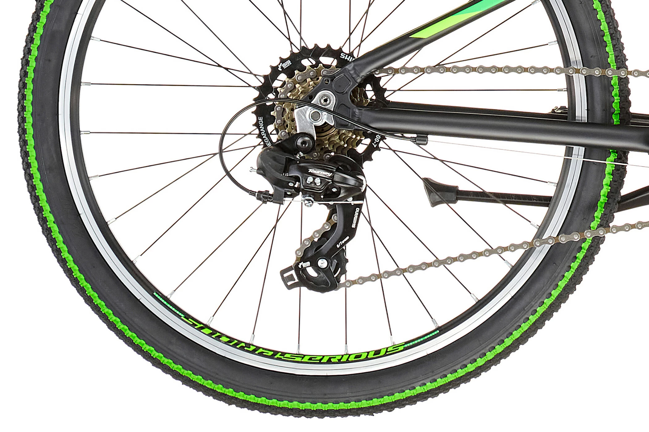 The light aluminium frame of the Serious Rockville features robust components and a very child-friendly geometry. This model’s strongly sloping top tube makes for safe handling.
