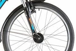 The light aluminium frame features robust equipment and a very child-friendly geometry (due to its strongly sloping top tube). This allows super safe handling of the Rockville. The impressive accessory package of the Rockville Street includes mudguards, rack and Shimano hub dynamo lighting system.