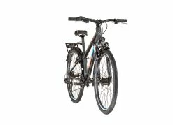 The light aluminium frame features robust equipment and a very child-friendly geometry (due to its strongly sloping top tube). This allows super safe handling of the Rockville. The impressive accessory package of the Rockville Street includes mudguards, rack and Shimano hub dynamo lighting system.