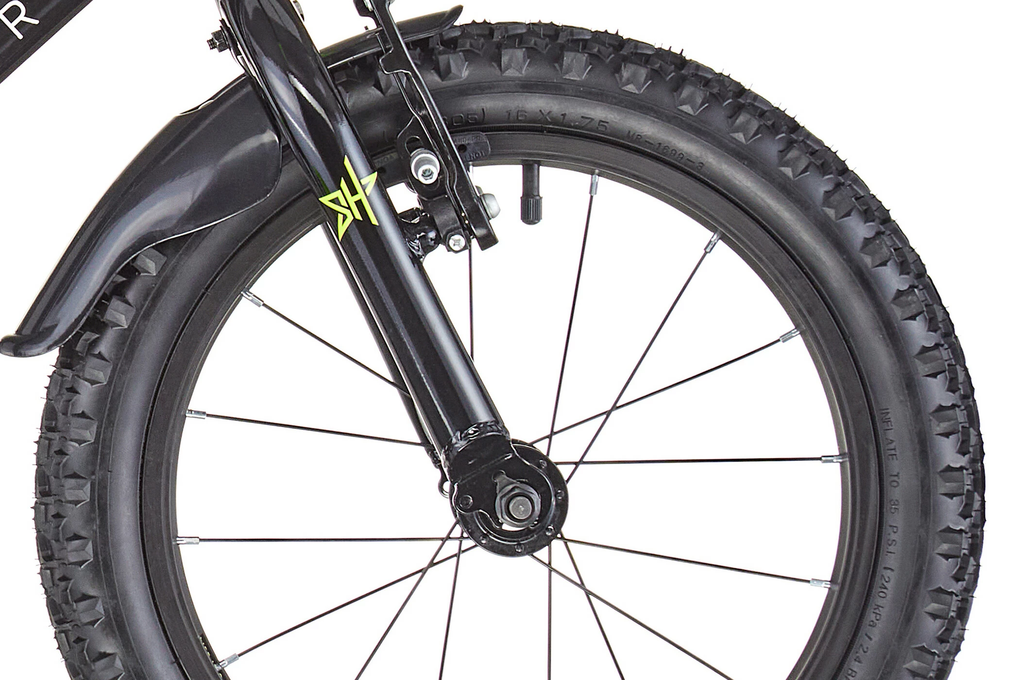 Superhero har stilfulde greb, et Rizer bar-styr, stilfulde motocross-mudderbeskyttere og quick release-klemmer på sadelpinden – ligesom de voksne modeller.Den er udstyret med en letløbende V-bremse på forhjulet og en gennemprøvet coasterbremse på baghjulet, der holder de unge ildsjæle i skak med deres fart. Denne model er baseret på et godt gammelt enkeltgearet drivlinetog med fuld beskyttelse af kæden.Så den nyeste generation af cykelhelte kan klare enhver situation og holde buksebenene rene tilmed.