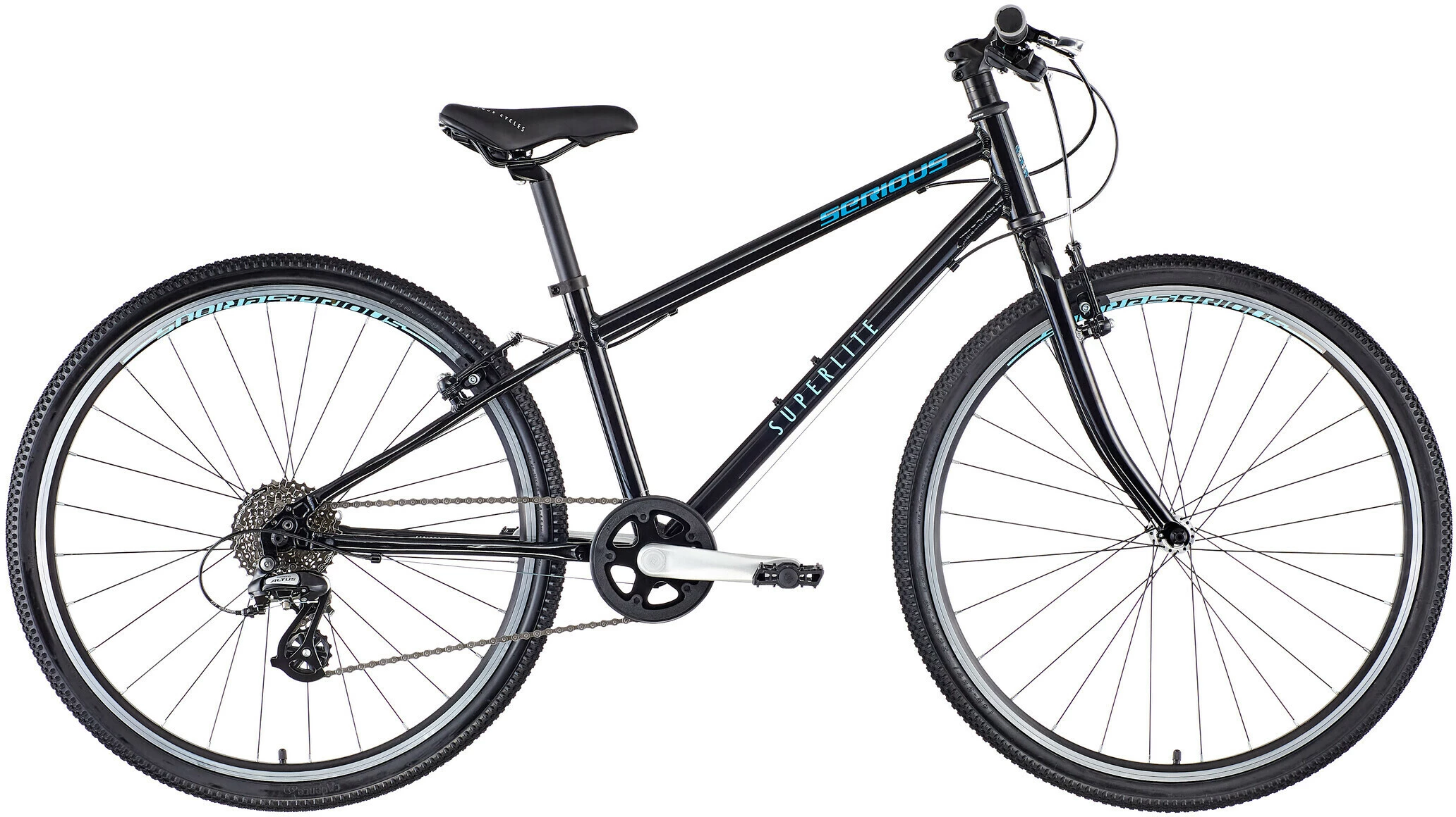 Til vilde ture med deres bedste venner eller til at være ude i skoven og på markerne med familien i weekenden har unge mennesker brug for en robust og smidig cykel. 26 tommer Serious Superlite er netop en sådan cykel. I smart sort og med en 8-speed Shimano derailleur vil du få en masse sjov.