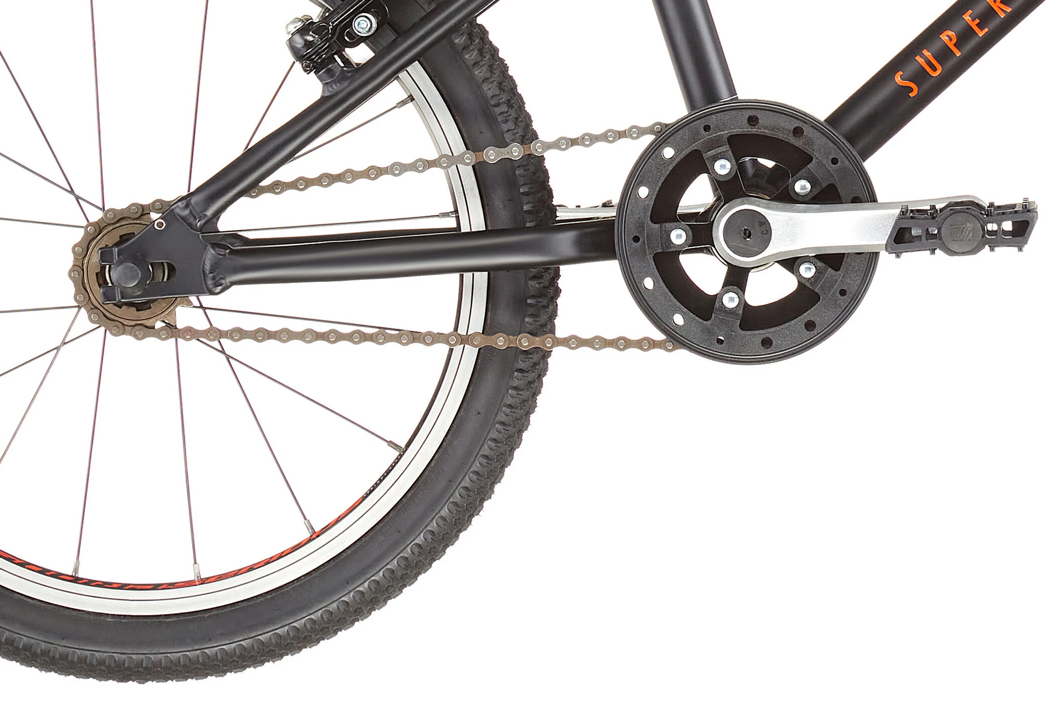 For at barnet kan koncentrere sig fuldt ud om at cykle, er den kun udstyret med det mest nødvendige. Dette omfatter letanvendelige fælgbremser for og bag, dæk med slidbaner til forskellige ruter og pedaler med godt greb. Den justerbare sadelpind betyder, at de yngste ryttere på Superlite også vil kunne have det sjovt i længere tid.