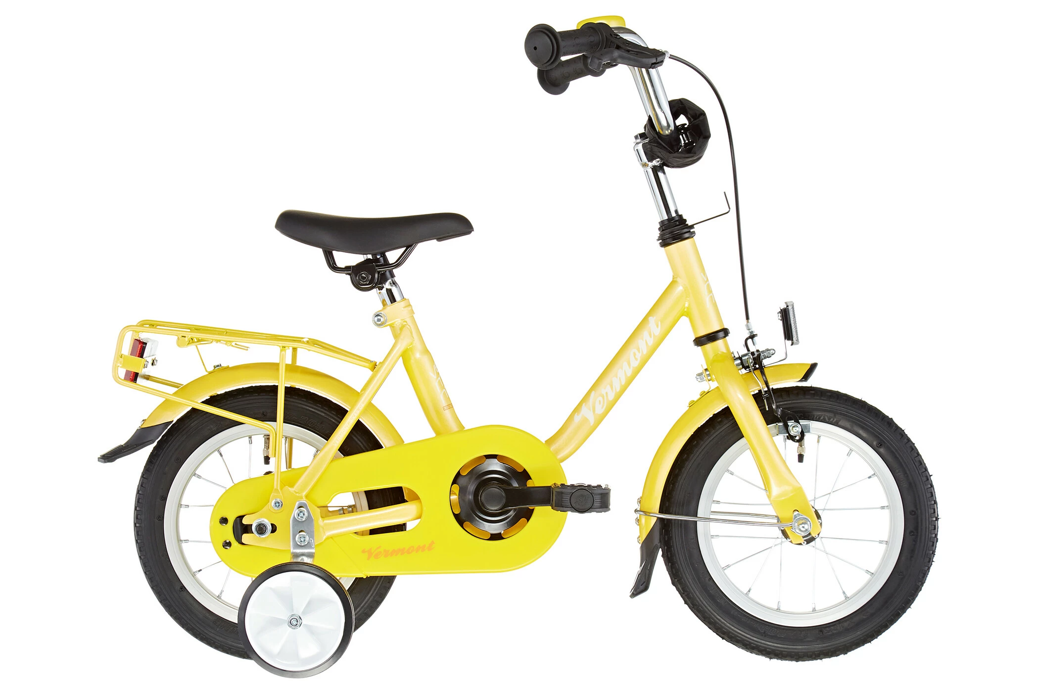 Den cool Vermont Classic 12 imponerer ikke kun med sit retro-look, men frem for alt med sin kvalitet og sine nyttige detaljer. Ud over et stel med lavt indtræk har Vermont børnecyklen robuste aluminiumsfælge, coasterbremser og forbremser med børnevenligt justerbare bremsegreb og en forhjulspude. Et andet højdepunkt er den fede bagagebærer, så man også kan transportere sine cykelture. Stænkskærmene, der er farvemæssigt koordineret med stellet, beskytter også børnene mod mudder og snavs på turene. Takket være kædebeskyttelseskassen bliver bukserne ikke fanget i kæderne og bliver samtidig ikke beskidte. Men der er også plads til nybegyndere: Der medfølger et sæt støttehjul, som gør det lettere for børnene at komme i gang.