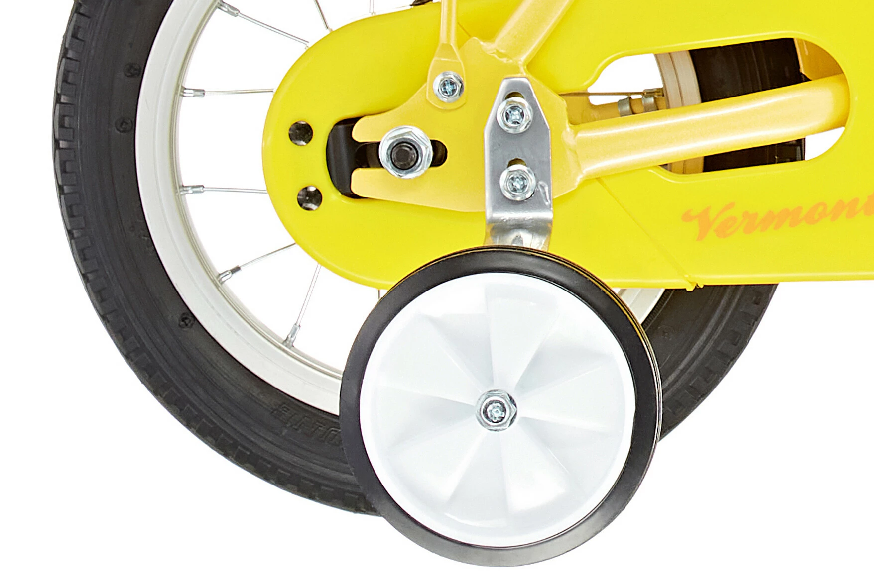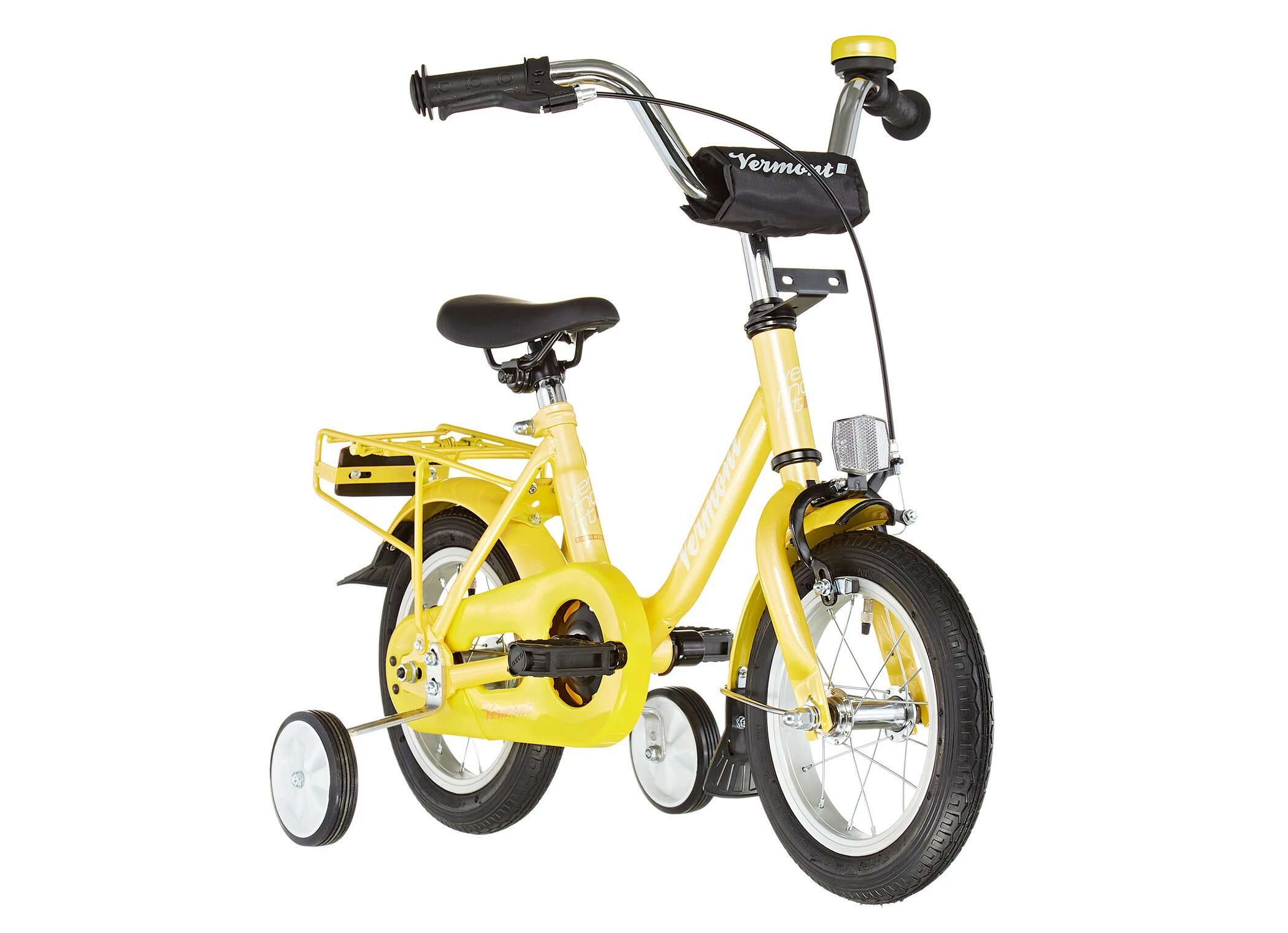 Den cool Vermont Classic 12 imponerer ikke kun med sit retro-look, men frem for alt med sin kvalitet og sine nyttige detaljer. Ud over et stel med lavt indtræk har Vermont børnecyklen robuste aluminiumsfælge, coasterbremser og forbremser med børnevenligt justerbare bremsegreb og en forhjulspude. Et andet højdepunkt er den fede bagagebærer, så man også kan transportere sine cykelture. Stænkskærmene, der er farvemæssigt koordineret med stellet, beskytter også børnene mod mudder og snavs på turene. Takket være kædebeskyttelseskassen bliver bukserne ikke fanget i kæderne og bliver samtidig ikke beskidte. Men der er også plads til nybegyndere: Der medfølger et sæt støttehjul, som gør det lettere for børnene at komme i gang.