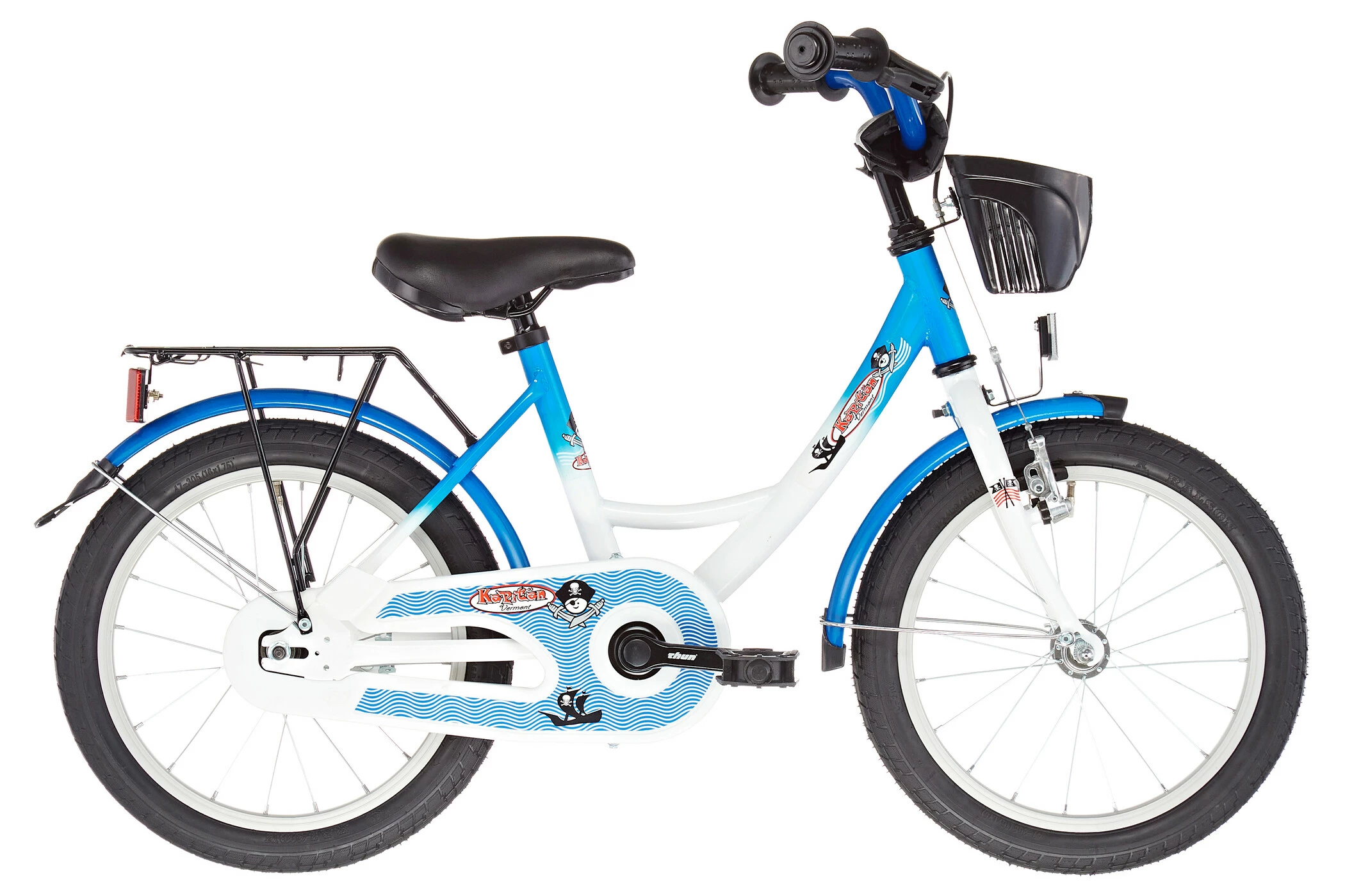 Sæt dine drenge på denne fantastiske lille 16 tommer cykel fra Vermont. Vermont Kapitn er udstyret med robuste komponenter, der kan modstå et uventet styrt eller spild, og den er fantastisk til den lille pirat, der lærer at køre. Med mange funktioner, der almindeligvis findes på større cykler, er der masser af liv tilbage efter at have fjernet støttehjulene som en skolecykel. Der er tilføjet ekstraudstyr, bl.a. en lyse blå og hvide farver, et rearrack, reflekser og en frontkurv. Få din lille pige i gang med at cykle i dag med en Vermont Kapitn.