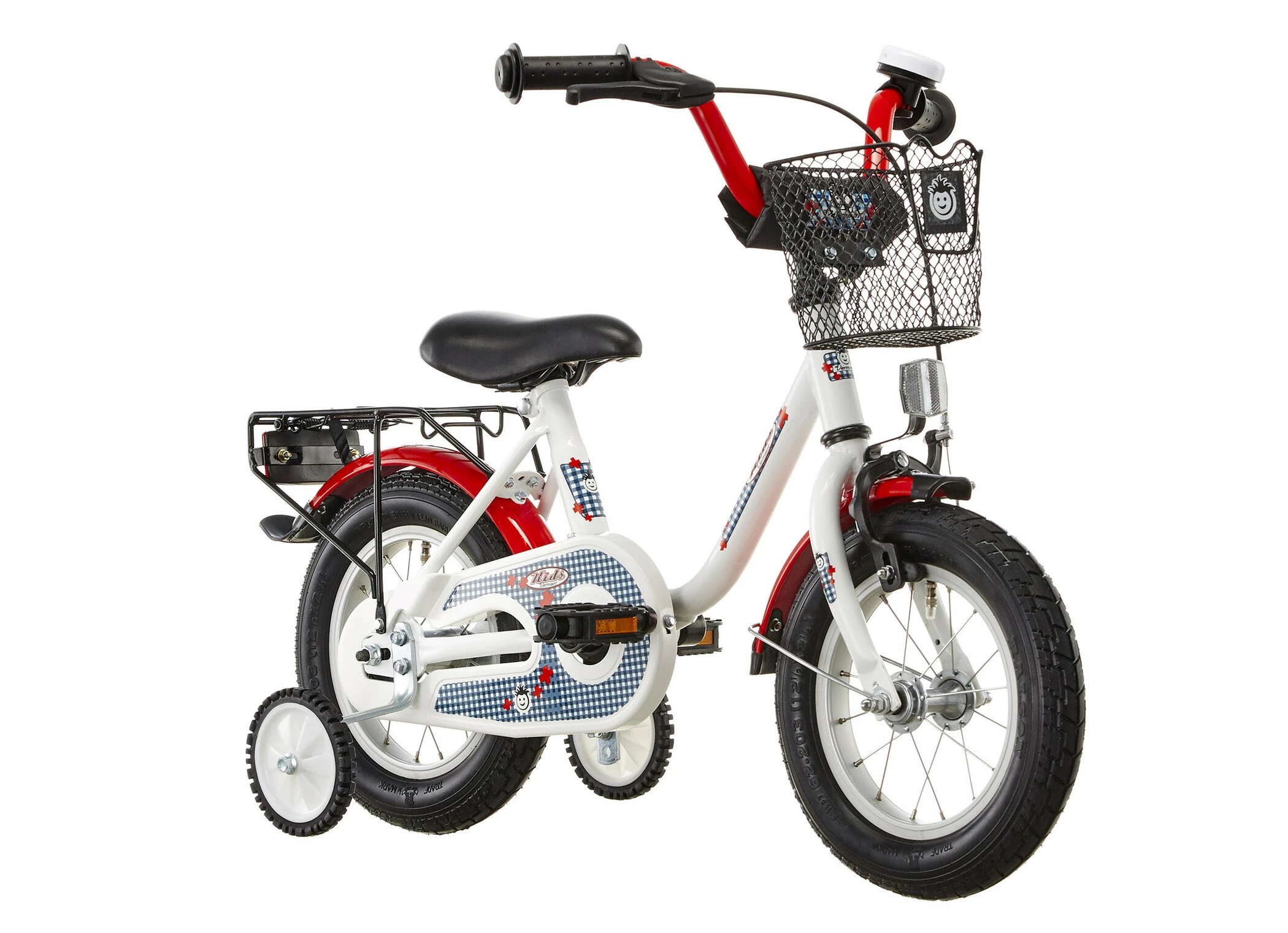 De neutrale farver på Kids Karo 12 tommer gør den perfekt til både drenge og piger.Kids Karo er robust, men let i Hi-Ten let stål og kan testes af børn og stadig leve endnu en dag. Udstyret med støttehjul er perfekt, før du lærer at balancere, men hjulene kan derefter fjernes, og Kids Karota får et nyt liv. Med racerrødt styr og stænkskærme for og bag, bagagebærer og frontkurv er Kids Karo en fantastisk måde for dine børn at begynde at cykle på.