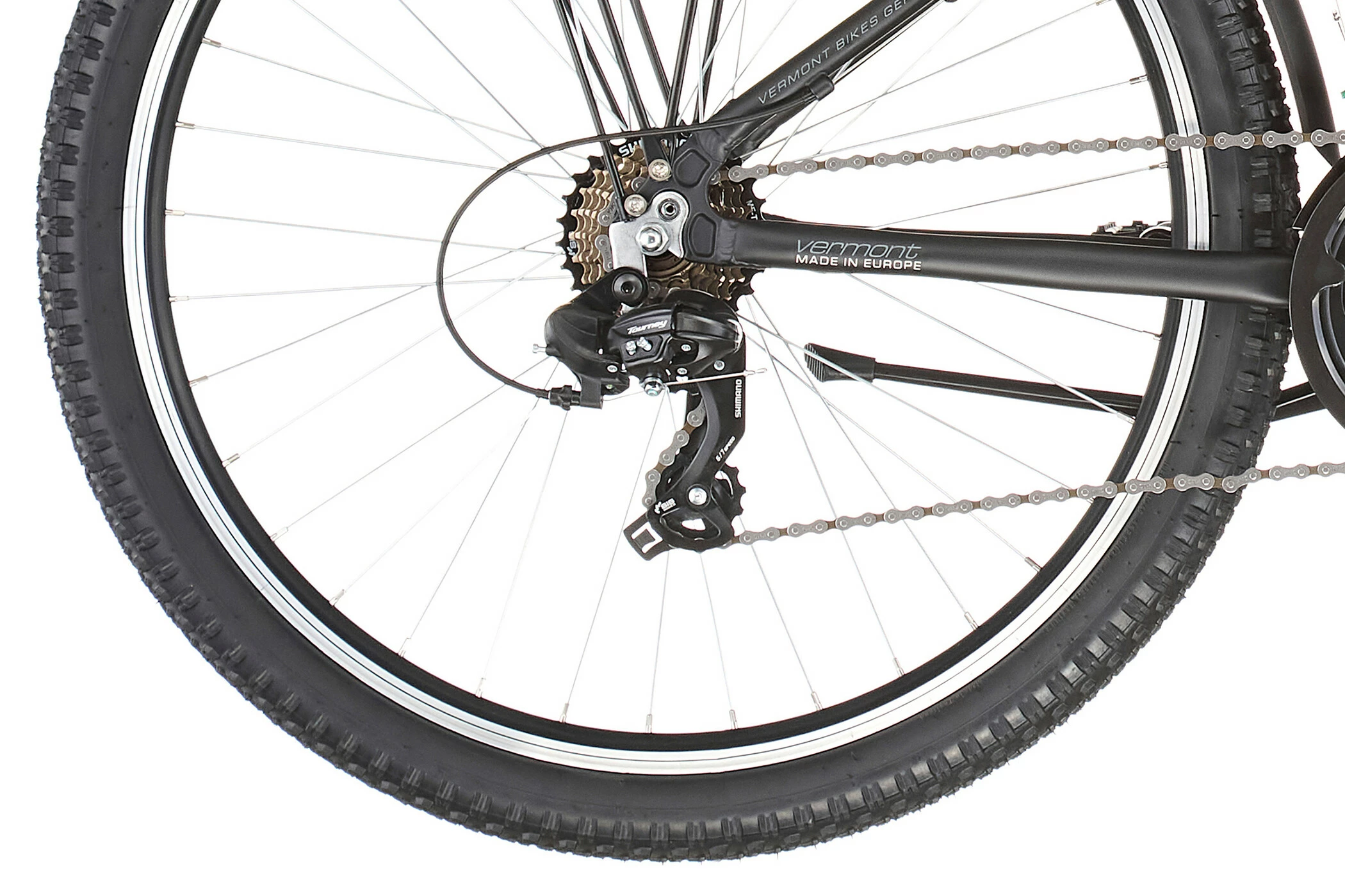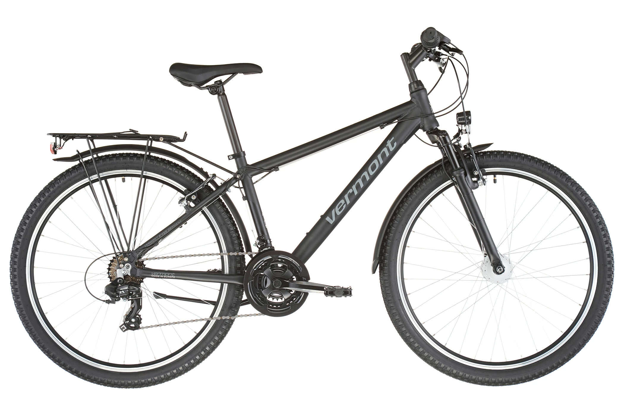 Vermont Madoc 26 kombinerer egenskaberne fra en fyldig hverdagscykel med en 21-trins Shimano. Den er udstyret med fender, bagagebærere og et belysningssystem.