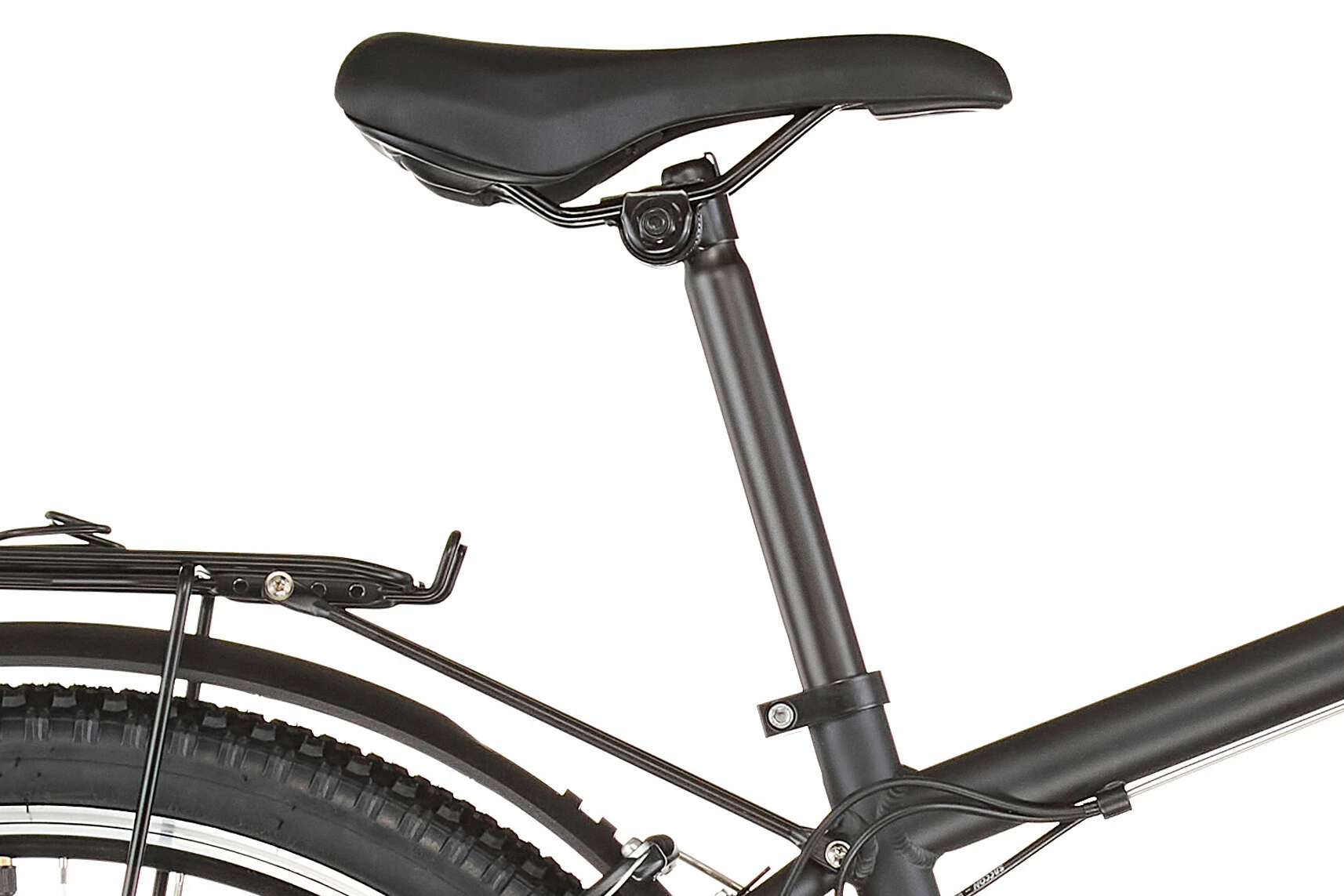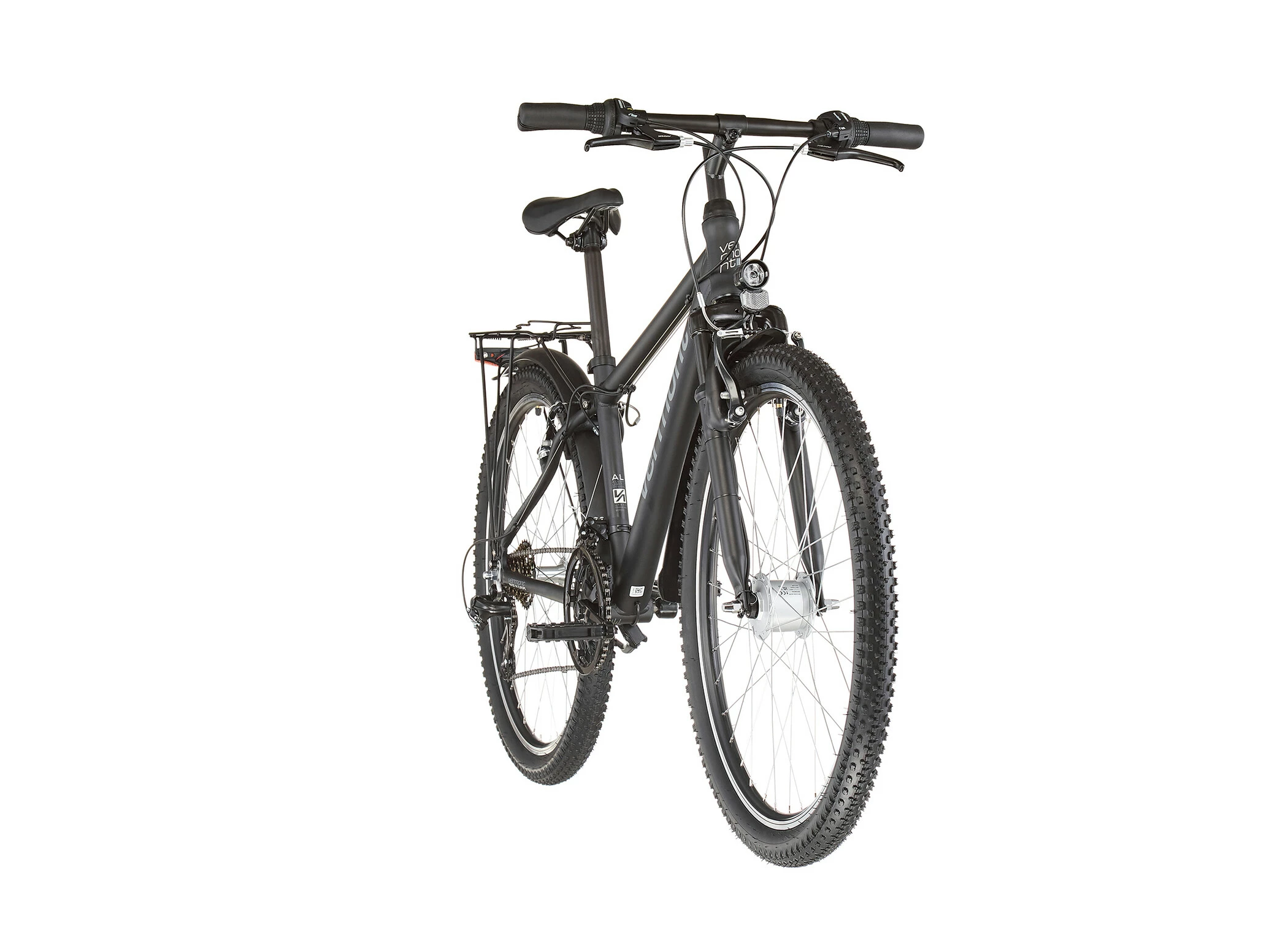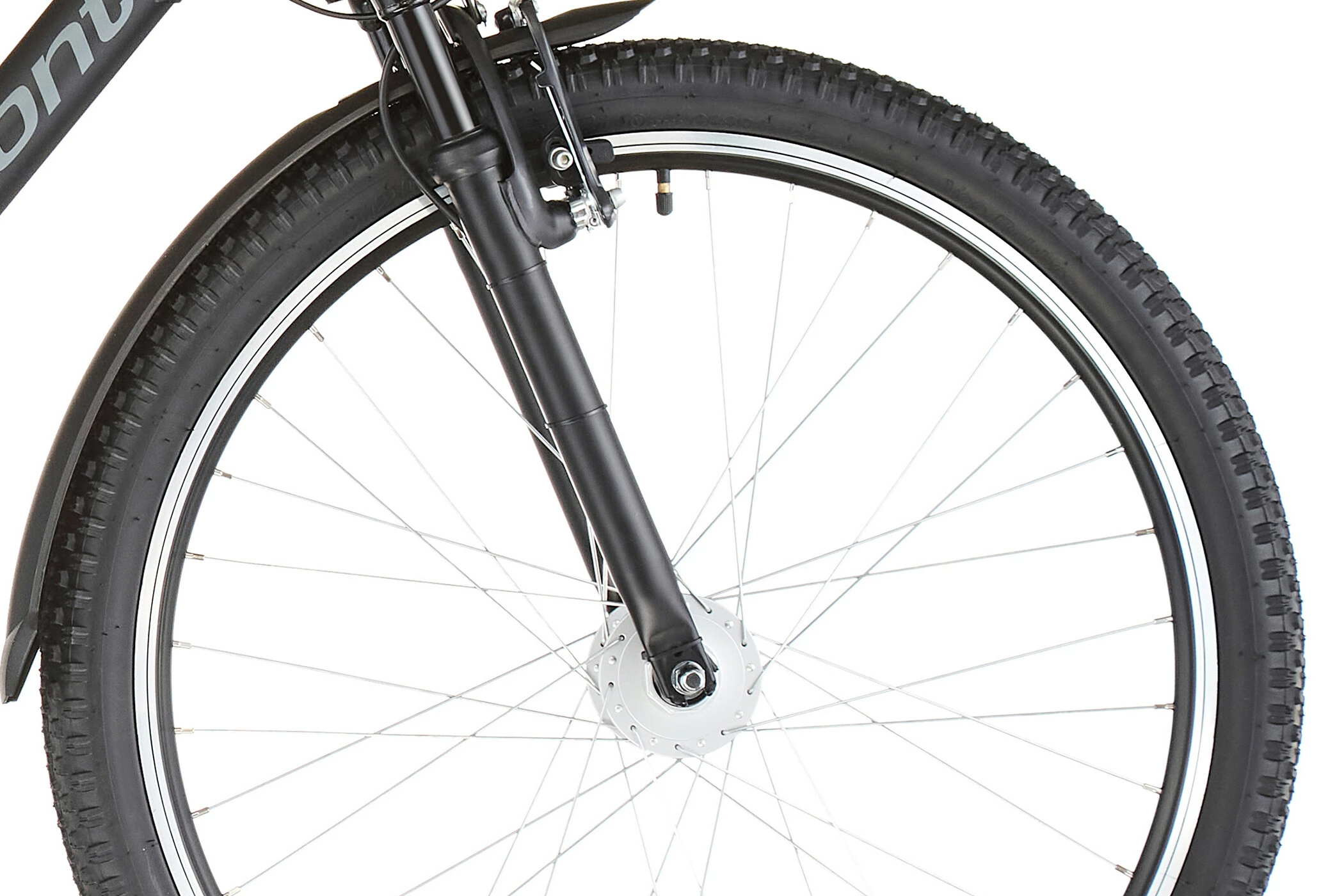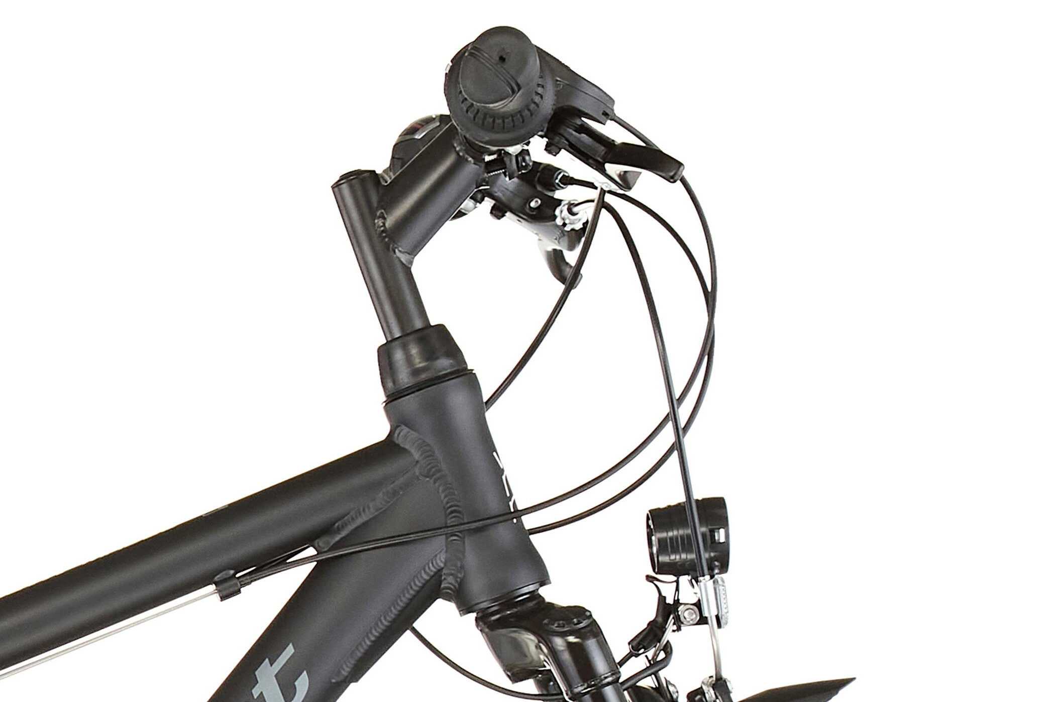 Den lette aluminiumsramme har et karakteristisk skråt overrør, som er både let og sporty. De kraftige V-bremser på for- og baghjulene giver kontrol under alle forhold. Forgaflen foran giver komfort og kontrol på mindre glatte veje og baner. Cyklen er udstyret med en kædeskærm, et stativ og MTB-lignende mudderbeskyttere i MTB-stil.