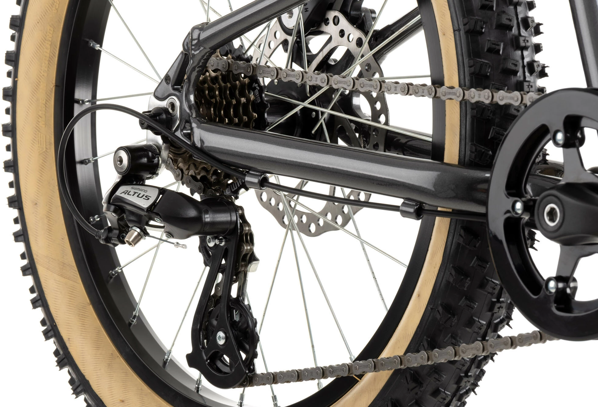 Denne cykel er udstyret med et Shimano Altus 7 Speed-drev med Rapidfire-skifter og kabelbetjente Tektro 510-RS-skivebremser og har alle muligheder for at klare alt, hvad rytteren kan kaste efter den. 20+ har også et styr, forgaffel og sadelpindssæt i aluminium, hvilket hjælper med at holde cyklens samlede vægt så lav som muligt.